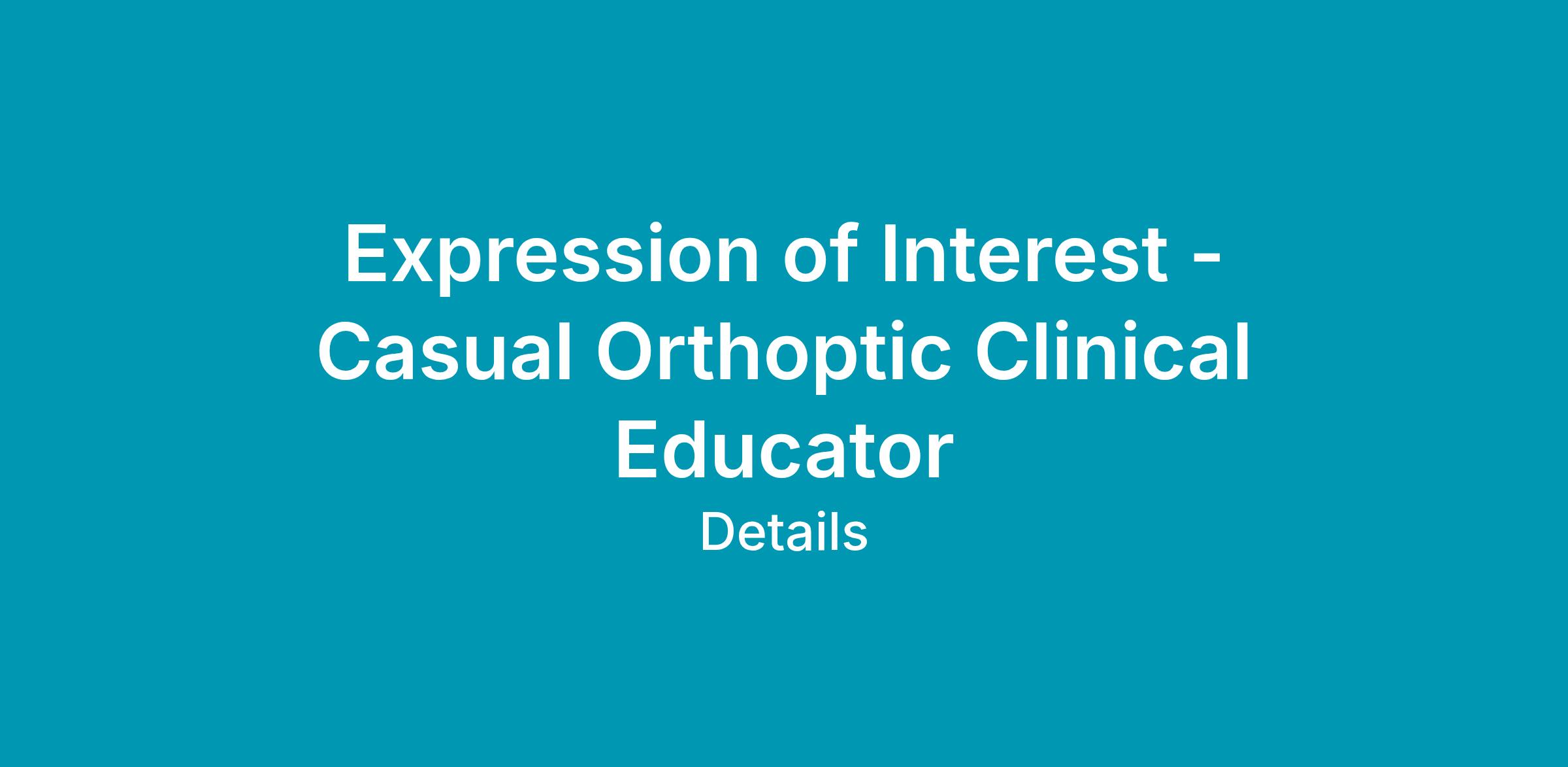 This role involves supervising and teaching Bachelor of Orthoptics (Honours) students within a university based teaching clinic and outreach environments. Clinical Educators support student‑led orthoptic services while ensuring safe, high‑quality, evidence based patient care. This opportunity is ideal for experienced clinicians with a passion for education, student mentorship and professional development, and an interest in contributing to high‑quality orthoptic training and community eye care.