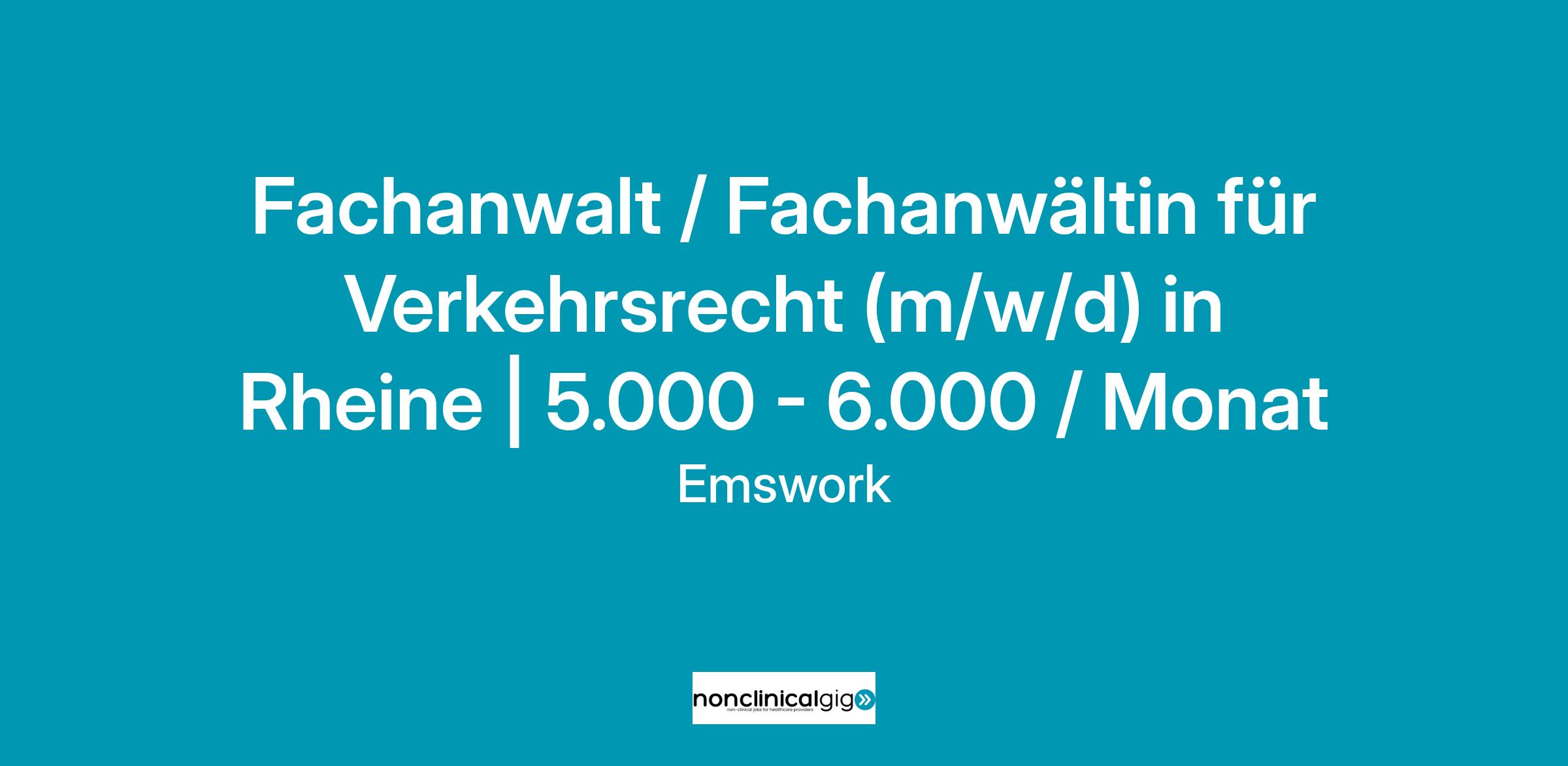 Fachanwalt / Fachanwältin für Verkehrsrecht (m/w/d) in Rheine | 5.000 - 6.000 / Monat