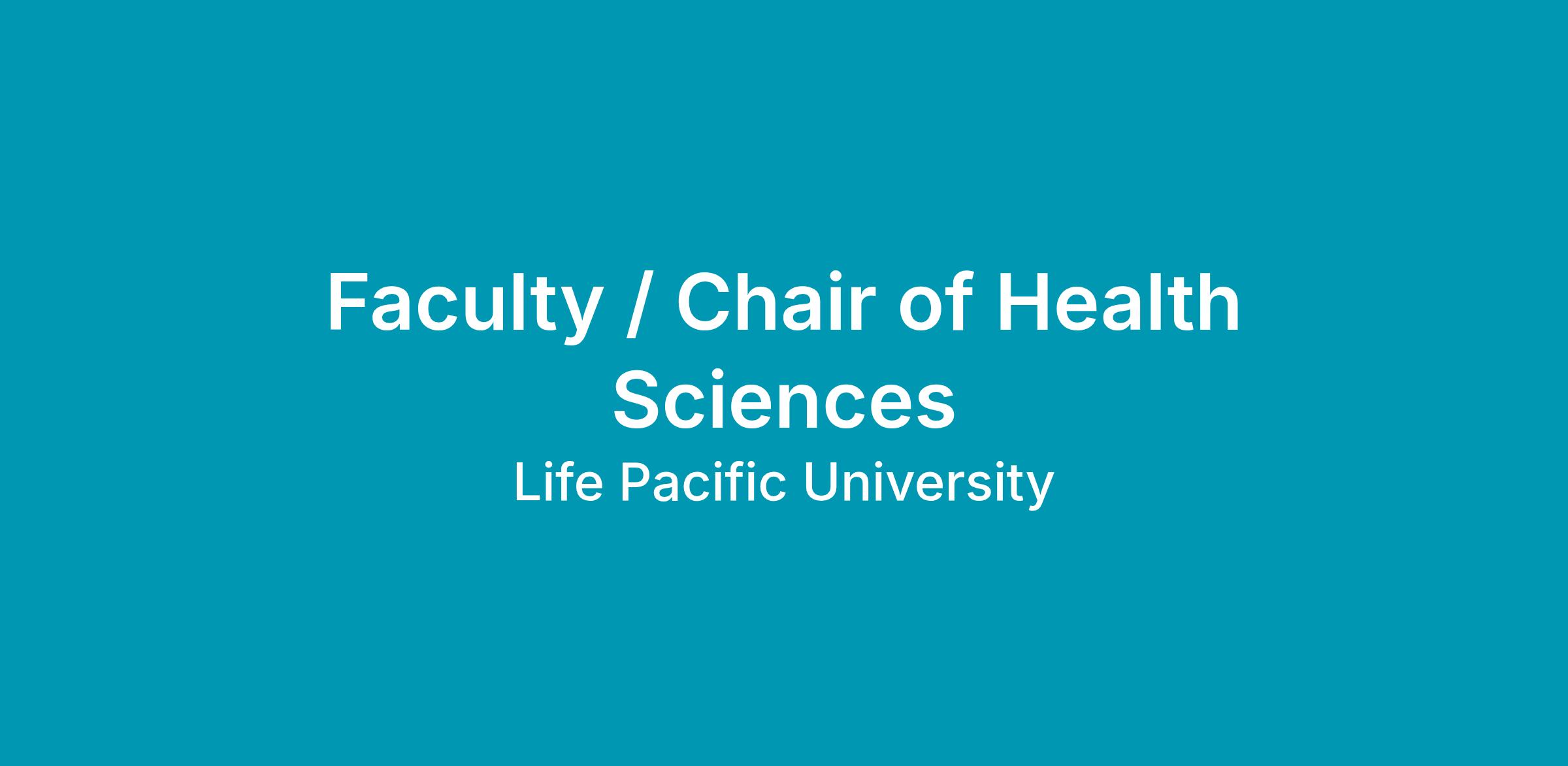 Life Pacific University (LPU) seeks candidates for a full-time faculty position to Chair/Direct our Bachelor of Science in Health Sciences. This is a new, traditional undergraduate program (TUG) offered on campus in San Dimas, CA. For over 100 years, Life Pacific University has educated a diverse student body for service to God in the Church, the workplace, and the world. The University is looking for a program chair who shares this mission and has a heart to lead our effort to serve our students and the broader community.