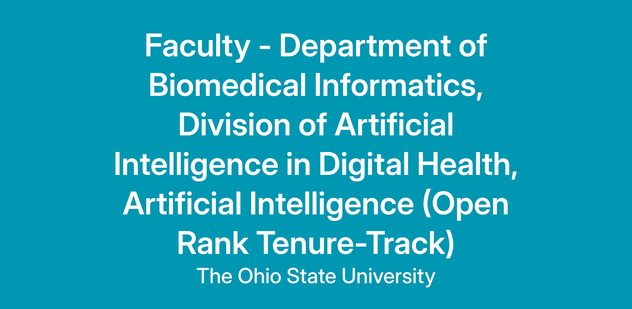 Artificial Intelligence in Digital Health (AIDH, https://go.osu.edu/aidh) in the Department of Biomedical Informatics (BMI, http://bmi.osu.edu) at The Ohio State University (OSU) is currently seeking applicants for multiple open rank (Assistant/Associate/Full) tenure-track faculty in Artificial Intelligence (AI), starting as early as Fall 2026. Academic rank and track commensurate with academic record and experience.