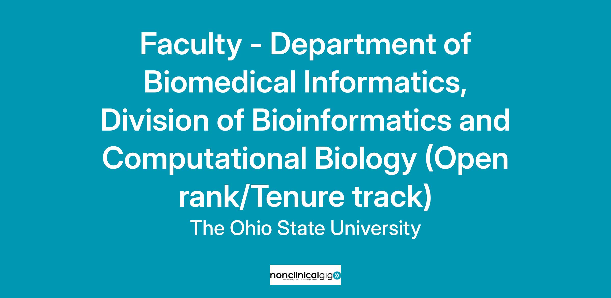 Division of Bioinformatics and Computational Biology (DBCB, https://medicine.osu.edu/departments/biomedical-informatics/divisions/division-of-bioinformatics-and-computational-biology-division-bcbs) in the Department of Biomedical Informatics (BMI, http://bmi.osu.edu) at The Ohio State University (OSU) is currently seeking applicants for a tenure-track faculty at the Assistant, Associate, and Full Professor levels with research interests in bioinformatics and computational biology.