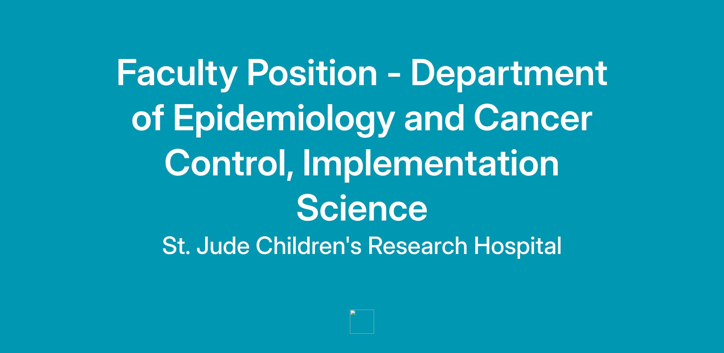 The Department of Epidemiology and Cancer Control at St. Jude Children’s Research Hospital is recruiting Faculty Members at the FULL, ASSOCIATE or ASSISTANT level as we expand our Department’s mission to conduct implementation science research to complement a well-established research program consisting of highly innovative clinical, biological, and population-health sciences research (both observational and interventional studies) among survivors of childhood cancer. Further, we conduct research to translate our findings into effective strategies to avert or mitigate cancer-treatment-related complications and improve the quality of life of childhood cancer survivors in alignment with implementation science activities. We seek creative and collaborative scientists with specific expertise and experience in implementation science as we grow and further expand the mission.