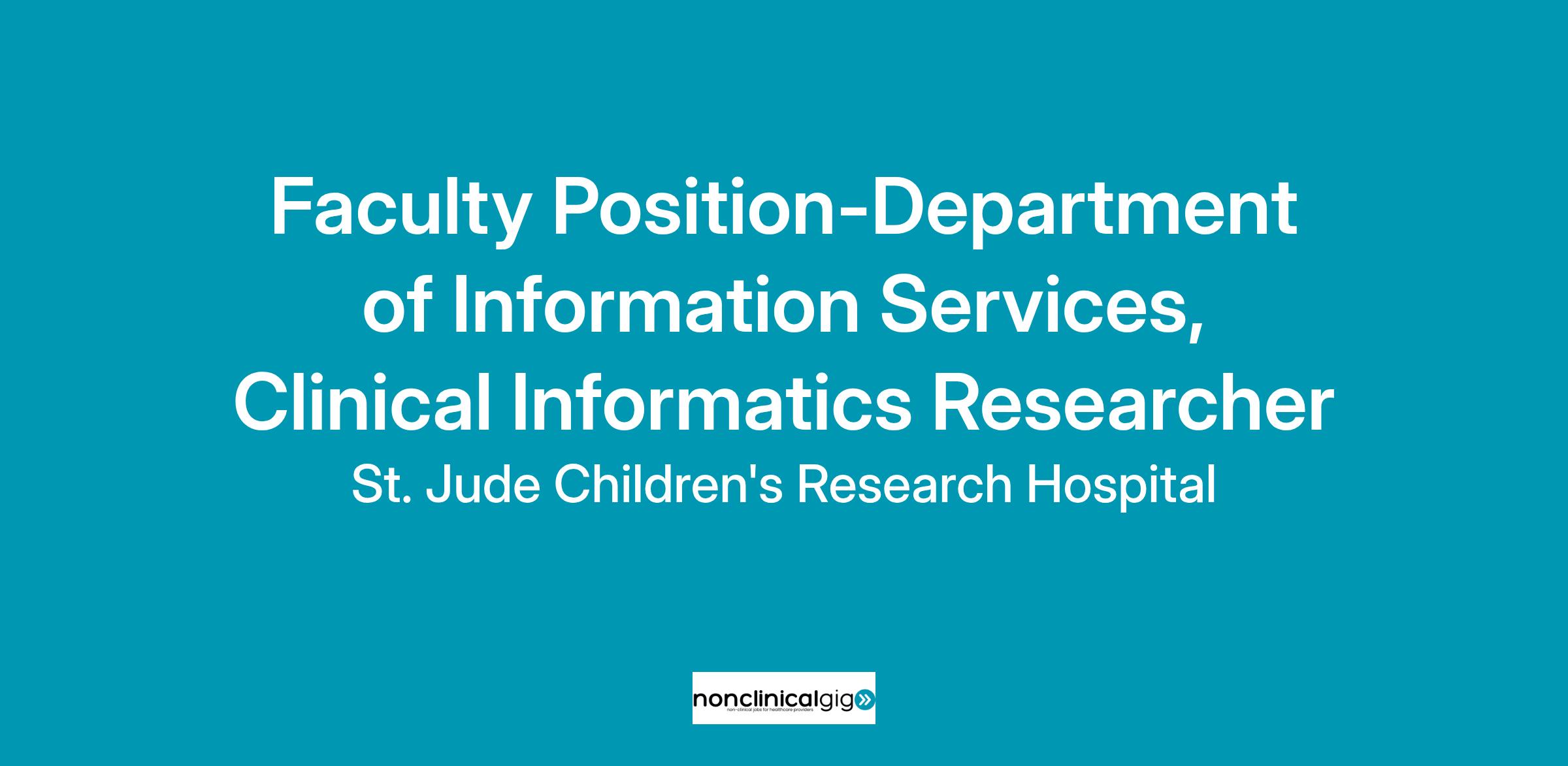 The Department of Information Services is seeking a highly skilled and motivated faculty- level Clinical Informatics Researcher to join our dynamic clinical informatics and clinical applications team. Faculty rank may be at the Instructor, Assistant or Associate level commensurate with years of experience and accomplishments. This individual will be responsible for conducting cutting-edge research to advance the field of clinical informatics, focusing on improving healthcare delivery, patient outcomes, and health IT systems. The role will involve collaboration with interdisciplinary teams, the design and execution of research studies and data analysis, with an overall goal to further the mission of St. Jude to advance research and cures for pediatric catastrophic diseases.