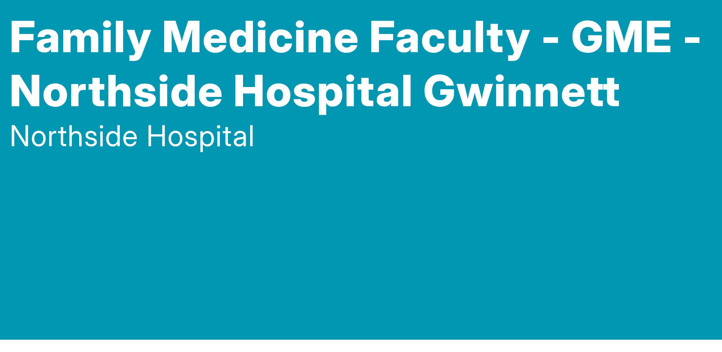 Family Medicine Faculty - GME - Northside Hospital Gwinnett