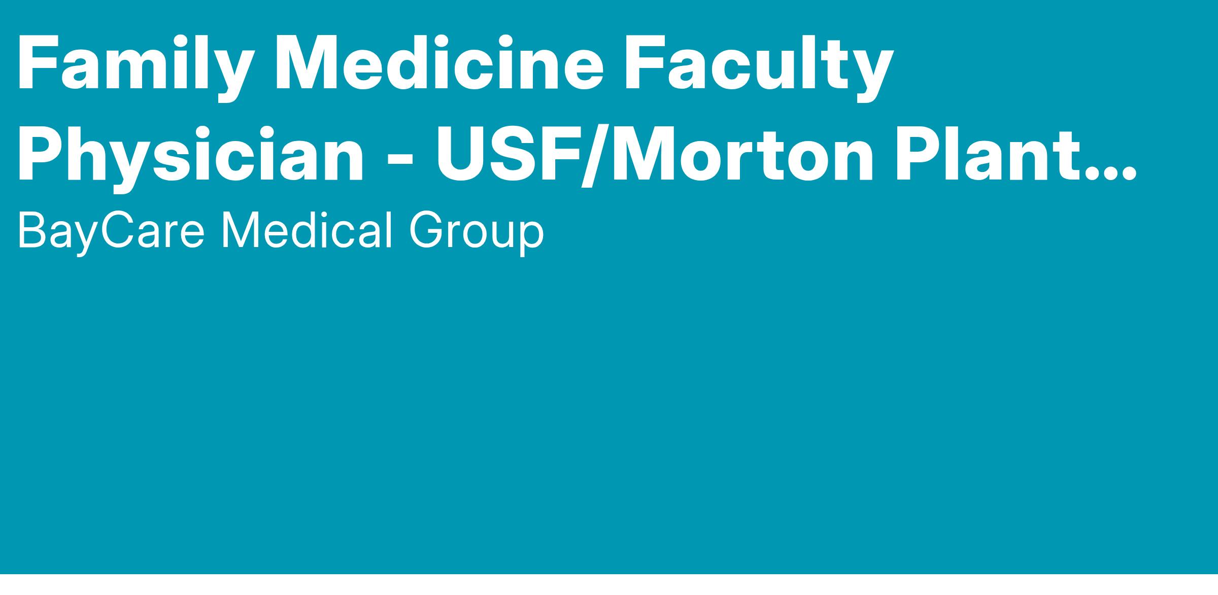 BayCare Health System is committed to the communities we serve by training the next generation of physicians through our teaching hospitals, Morton Plant Hospital and Winter Haven Hospital. Our residency programs are a blend of quality hospitals and clinic facilities. We are seeking a board certified/board eligible Family Medicine physician for a core facility position in our residency program in Clearwater, Florida. See our website to learn more.