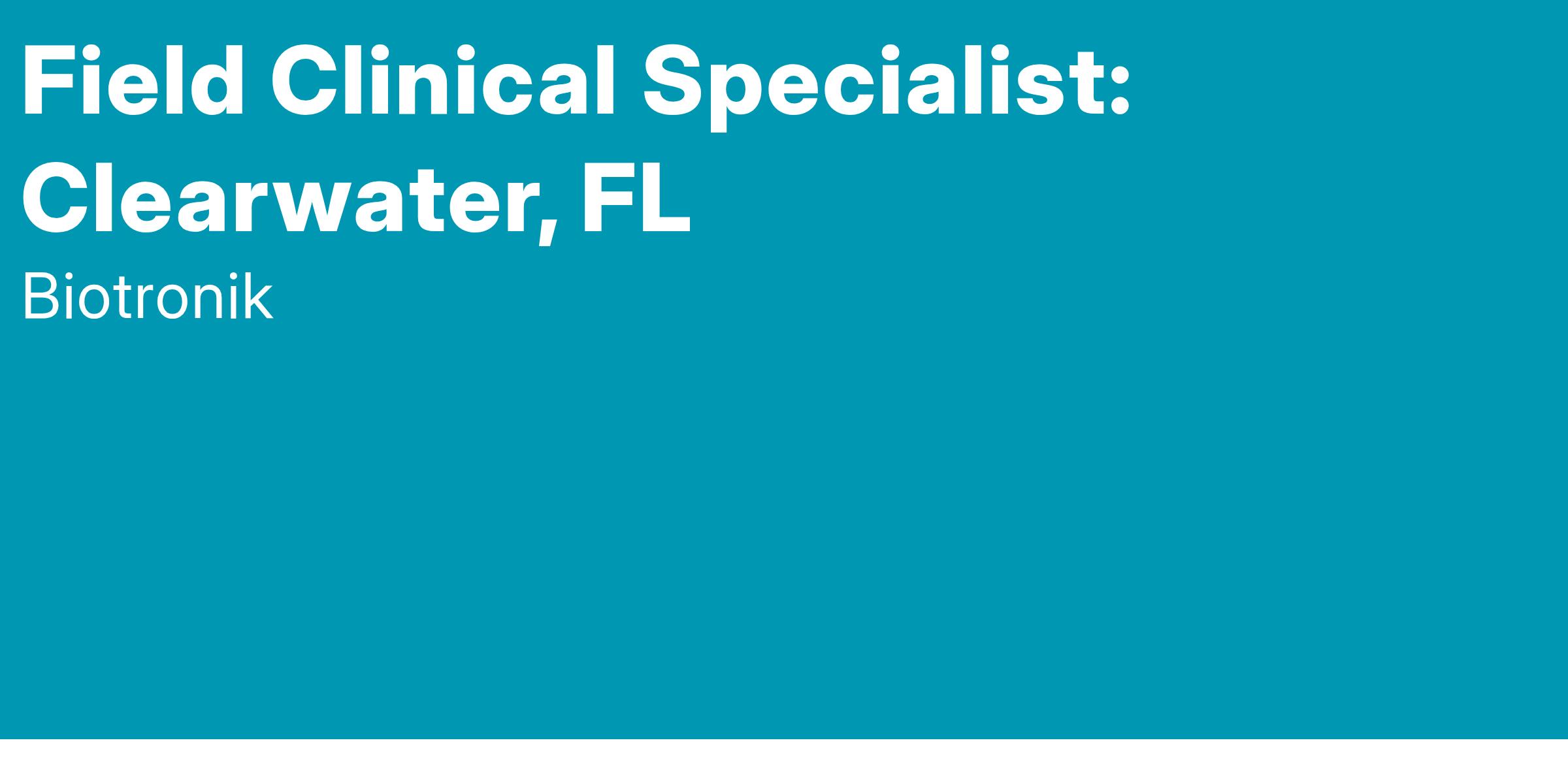 BIOTRONIK is looking to add to our Field Clinical Specialist team in Clearwater, FL (also recruiting for additional locations, see website). The Field Clinical Specialist (FCS) will provide technical and clinical support for Biotronik within an assigned territory. The FCS will be responsible for covering all bradycardia and tachycardia product segments. The FCS professionally represents Biotronik and provides education, follow-up services, implant services, in service training, and other related services as necessary to sales force, physicians and other cardiac pacing-related professionals. The FCS will report to the Regional Sales Director and take general instruction from local sales representatives for day to day activities.