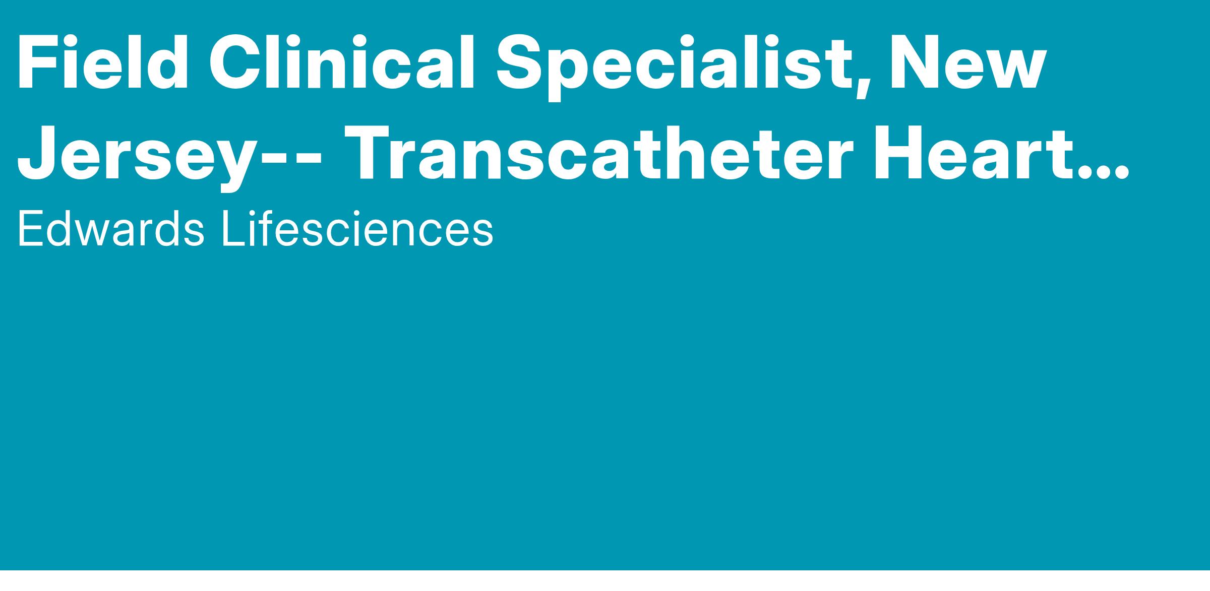 Make a meaningful difference to patients around the world. As a part of the Field Clinical Specialist team, you will be a critical part of delivering our patient focused innovations, partnering with clinical professionals, and training them on using our groundbreaking products. Your knowledge of working within the hospital ecosystem, combined with our in-depth training program, will help develop you into an Edwards subject matter expert, so you can play your own part in transforming patient lives.