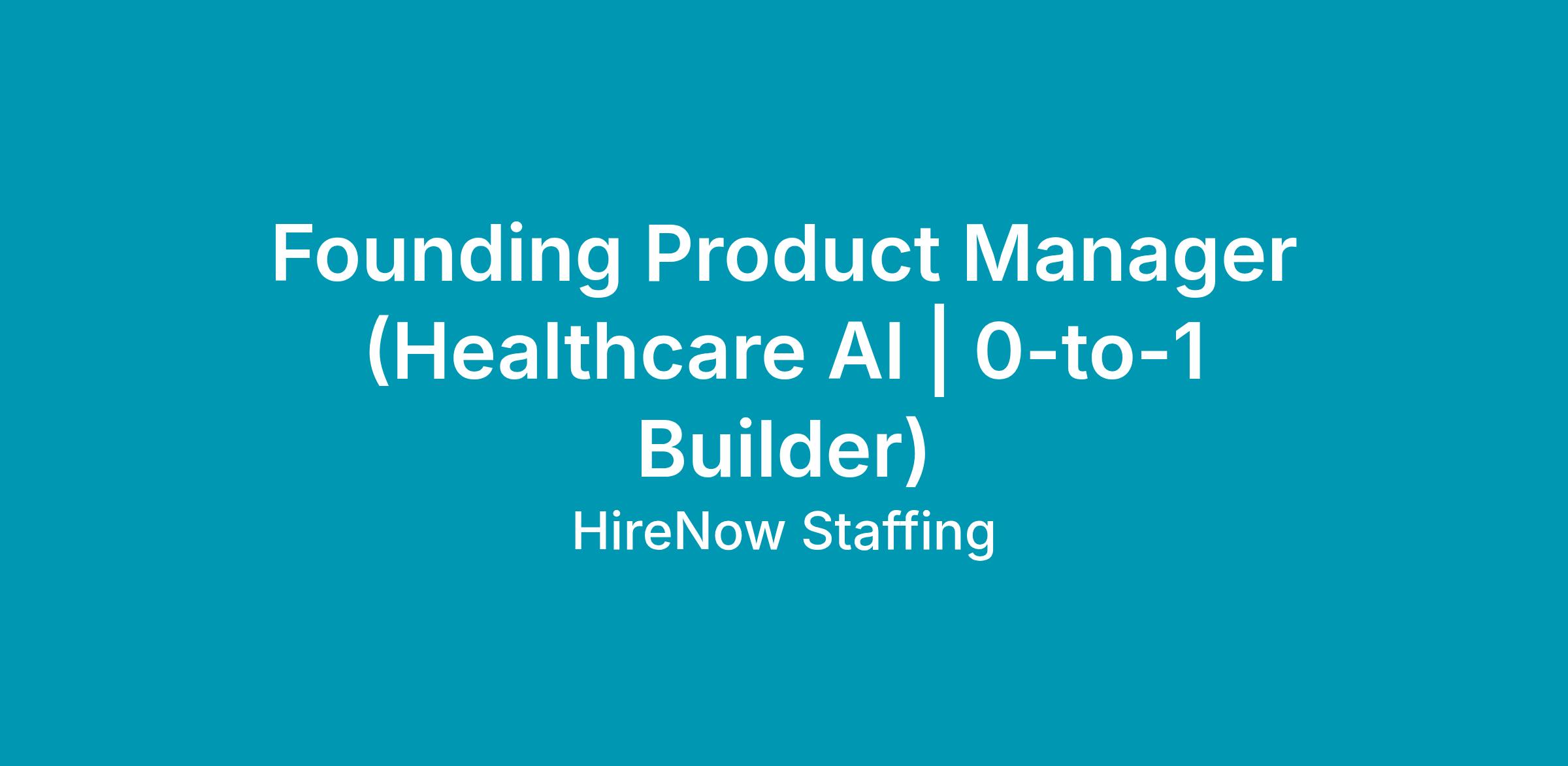 Founding Product Manager (Healthcare AI | 0-to-1 Builder)