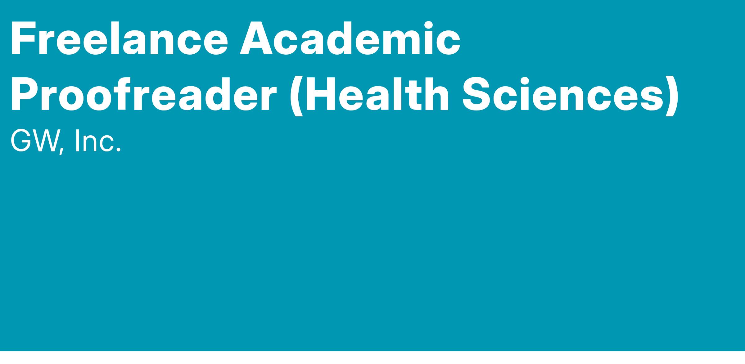 GW, a leading publishing vendor, is actively recruiting freelance proofreaders for academic and professional journals and books, with a concentration in the health science industries.
