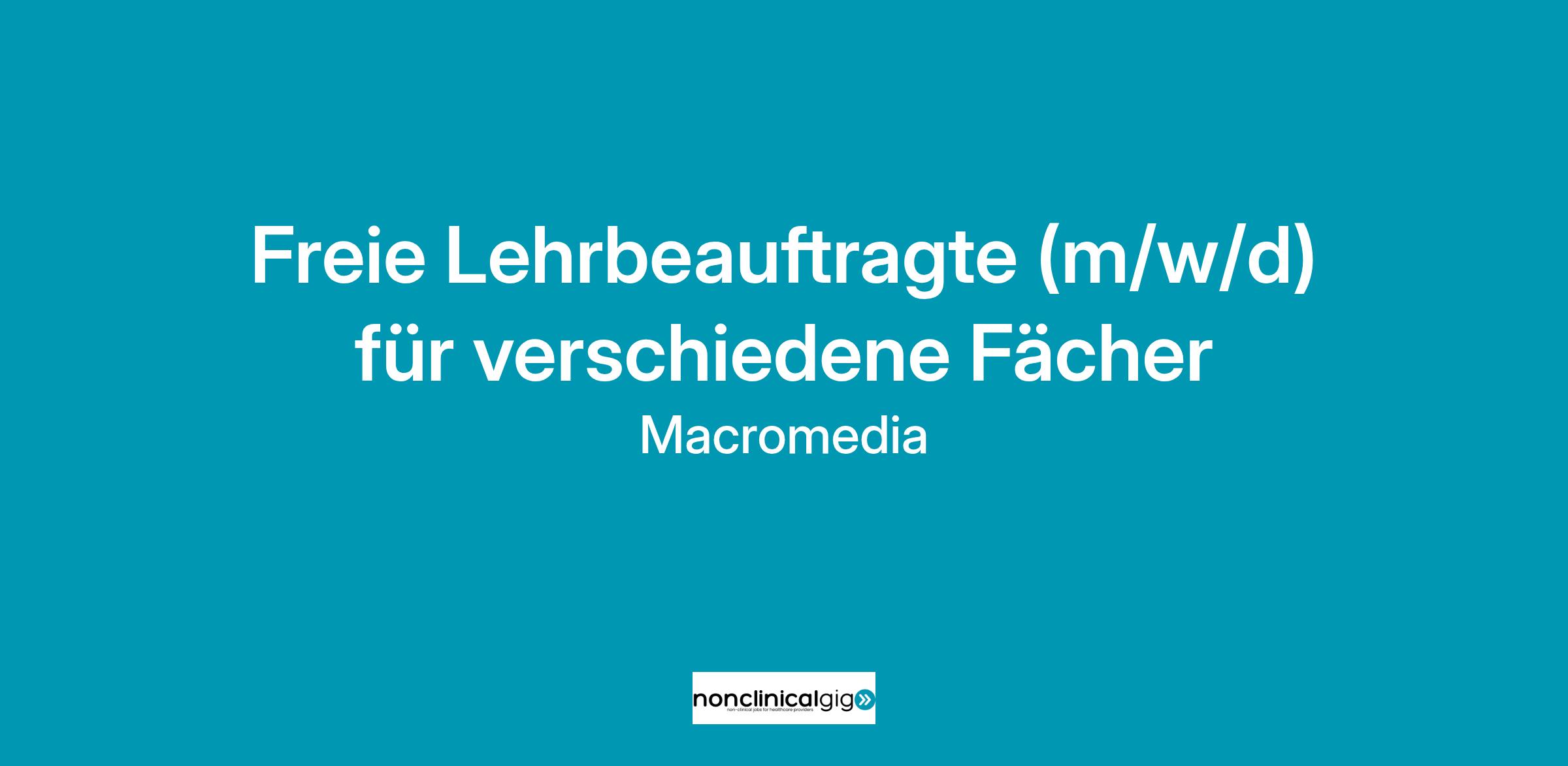 Macromedia gehört zur internationalen Bildungsgruppe Galileo Global Education. Erklärtes Ziel ist, jungen Menschen aus aller Welt unabhängig von ihrer Ausgangssituation Zugang zu höheren Bildungsabschlüssen zu ermöglichen. Über 200.000 Studierende sind bereits an den mehr als 50 Galileo-Schulen und Hochschulen weltweit eingeschrieben. In Deutschland sind wir als privater Bildungsträger mit der Marke Hochschule Macromedia, Macromedia Akademie sowie Cours Florent auf konsequentem Expansionskurs. Wir qualifizieren unsere zukünftigen Absolvent:innen im Hochschulstudium, in Ausbildungen, Weiterbildungen und Kooperationsstudiengängen für eine von exponentiellem Wandel geprägte digitale Arbeitswelt. Unsere Hochschulcampus und Study Center befinden sich in Berlin, Frankfurt, Freiburg, Hamburg, Köln, Leipzig, München, Stuttgart, Hannover und Düsseldorf. Unsere Jobangebote beinhalten Positionen in den Bereichen Administration, Facility, Forschung, IT, Lehre, Management, Marketing, Verwaltung und Sales.