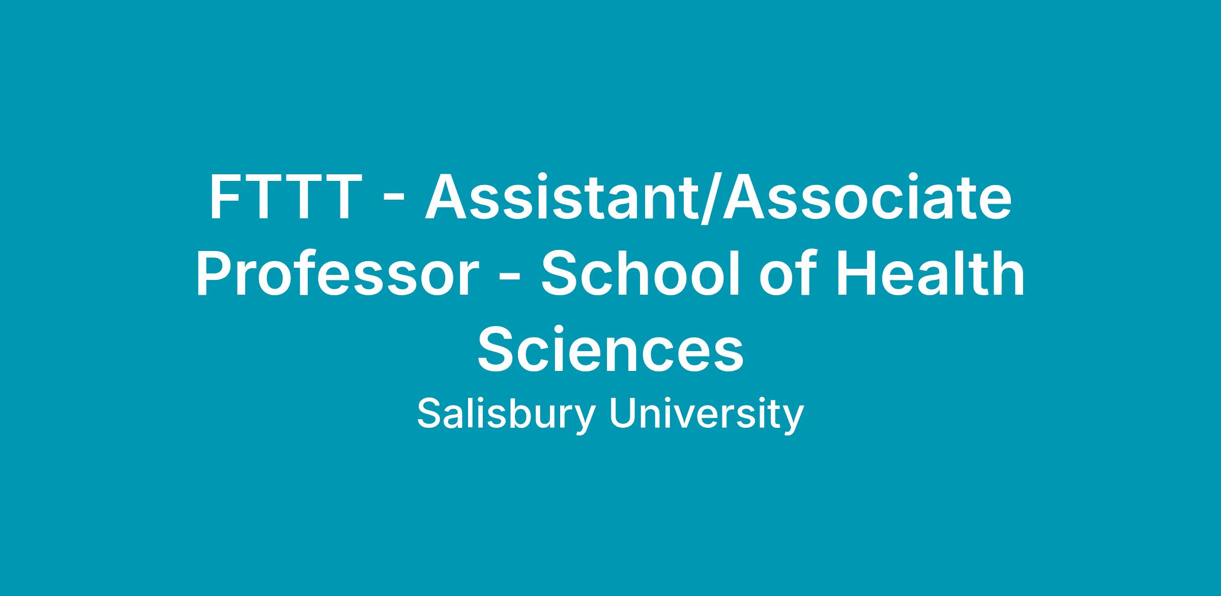 JR101685 FTTT - Assistant/Associate Professor - School of Health Sciences (Open)Department: