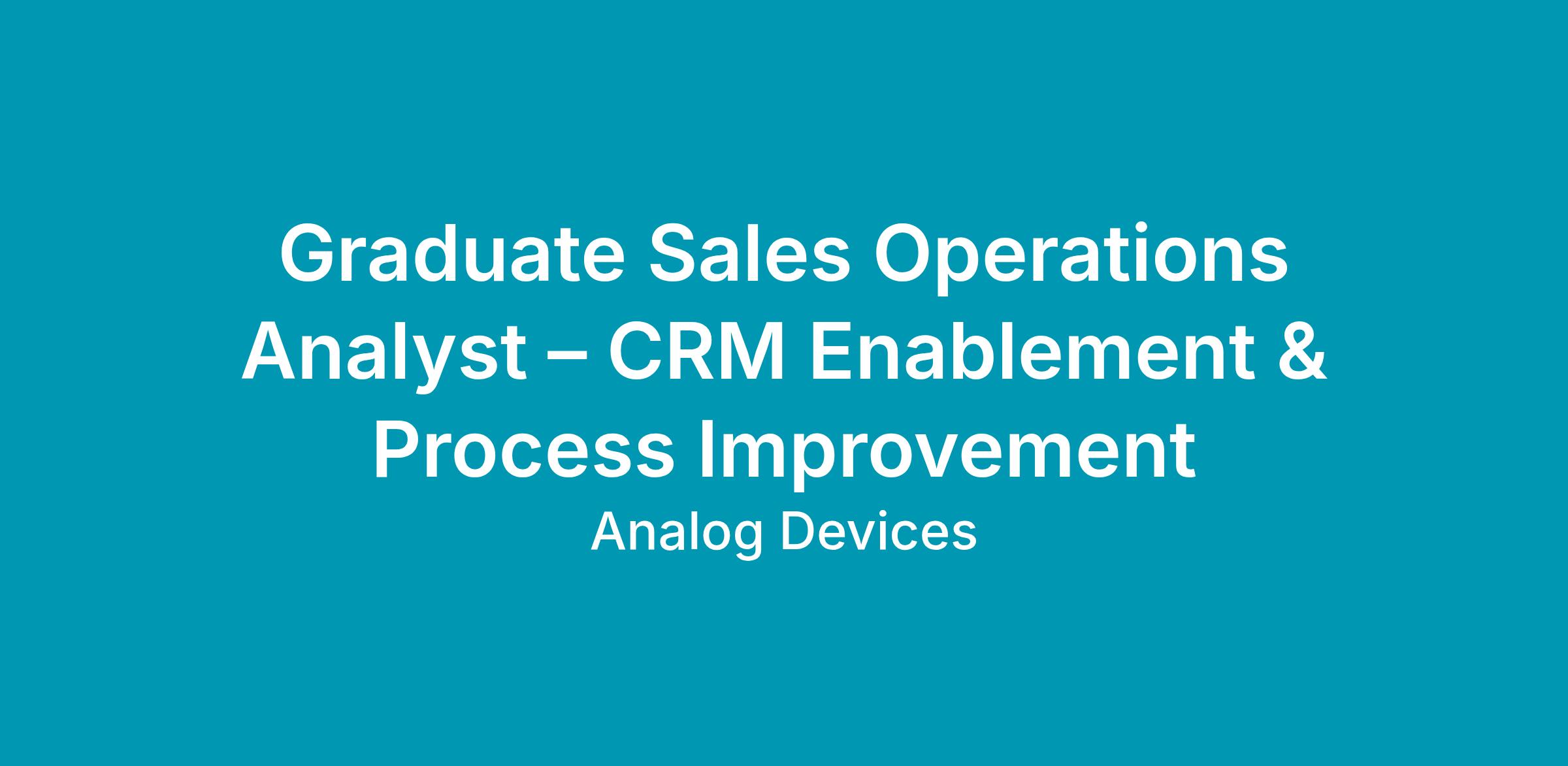 Graduate Sales Operations Analyst – CRM Enablement & Process Improvement