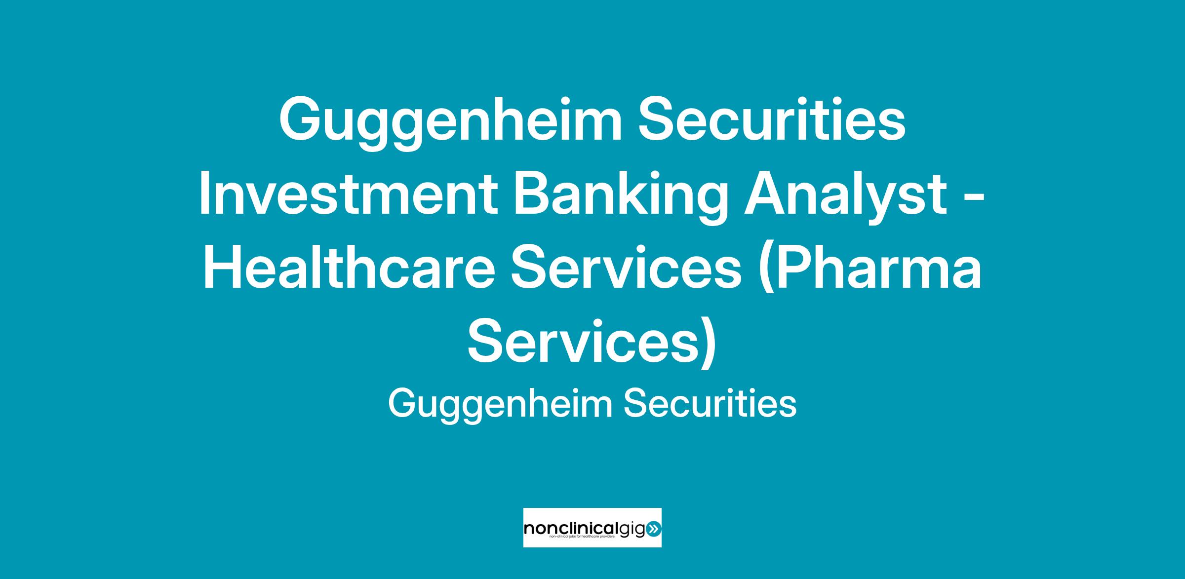 Guggenheim Securities (“GS”) is seeking an Analyst to join its Healthcare Services team in Richmond. This position will focus primarily on covering pharma services and have the opportunity to work with both Richmond and New York based Healthcare Services senior bankers.