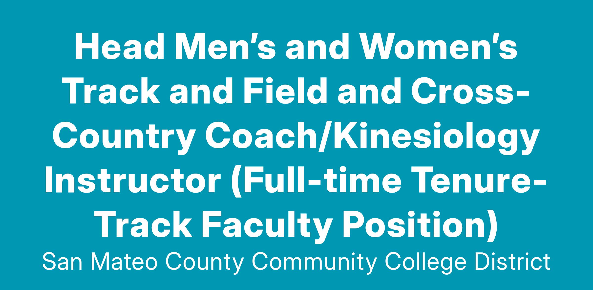 The duties below are representative of the duties of the classification and are not intended to cover all of the duties performed by the incumbent(s) of any particular position. The omission of specific statements of duties does not exclude them from the position if the scope of work is similar, related, or a logical assignment to this classification. Perform track and field and cross-country coaching assignments including, but not limited to supervision of athletes, organization of practices, hiring assistant coaches, scheduling of meets, creating, managing, and implementing year-round strength and conditioning program, coordination of recruitment and retention of student-athletes Represent College of San Mateo by attending CCCAA , Sport Coaches Association, and conference meetings Comply with California Community College Athletic Association ( CCCAA ) Rules and Regulations Conduct oversight of the track and field and cross-country program budgets Provide leadership to the overall organization and direction of the track and field and cross-country program Teach a variety of kinesiology activity and lecture courses including possibly teaching Dual Enrollment classes at a local high school Direct public relations and fundraising activities in support of the track and field and cross-country programs and the athletic program in general Monitor the academic progress of student-athletes and serve as liaison to the Financial Aid office Develop new curriculum and serve on division, college, District, and league or conference committees Participate in professional development activities Establish liaisons with San Mateo County and contiguous district high school coaches, media, businesses, and boosters Serve the track and field and cross-country programs and the athletic department in various support roles such as coordination of athletic tutoring and fundraising Establish and maintain linkages with other college departments to assist in the coordination of each student’s academic program and with four-year institutions to assist student-athlete transfer Perform other duties as required by contract, collective bargaining agreement, and general institutional needs Recruit, train, and oversee a staff of assistant track and field and cross-country coaches The college offers day, evening, online, and weekend classes, and faculty may be required to teach during any of these.
