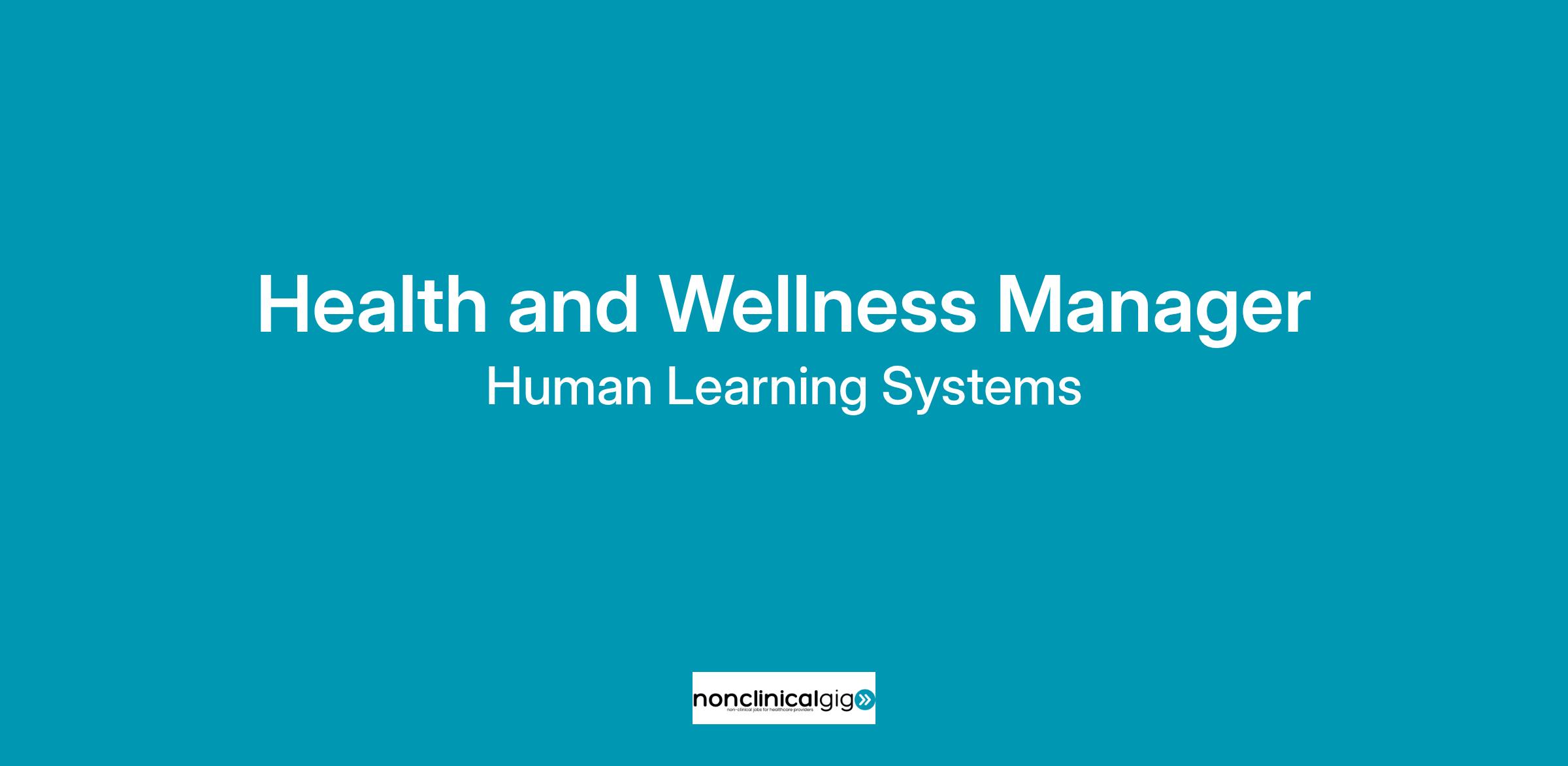 Position Title: Health & Wellness Manager