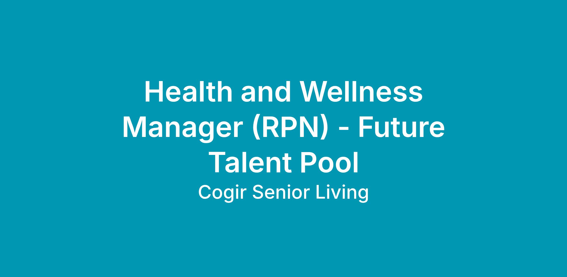 Health and Wellness Manager (RPN) - Future Talent Pool