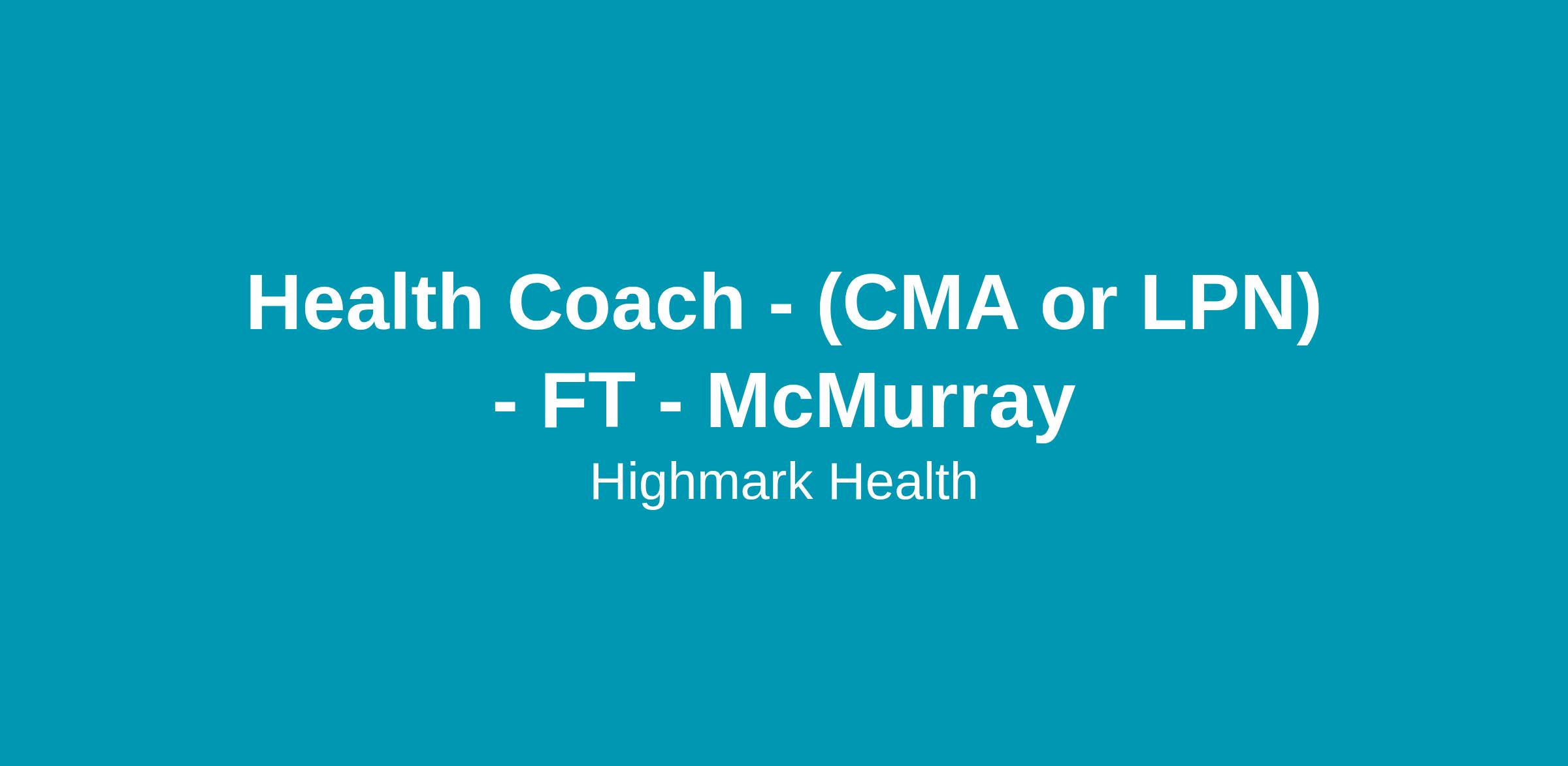 Health Coach - (CMA or LPN) - FT - McMurray