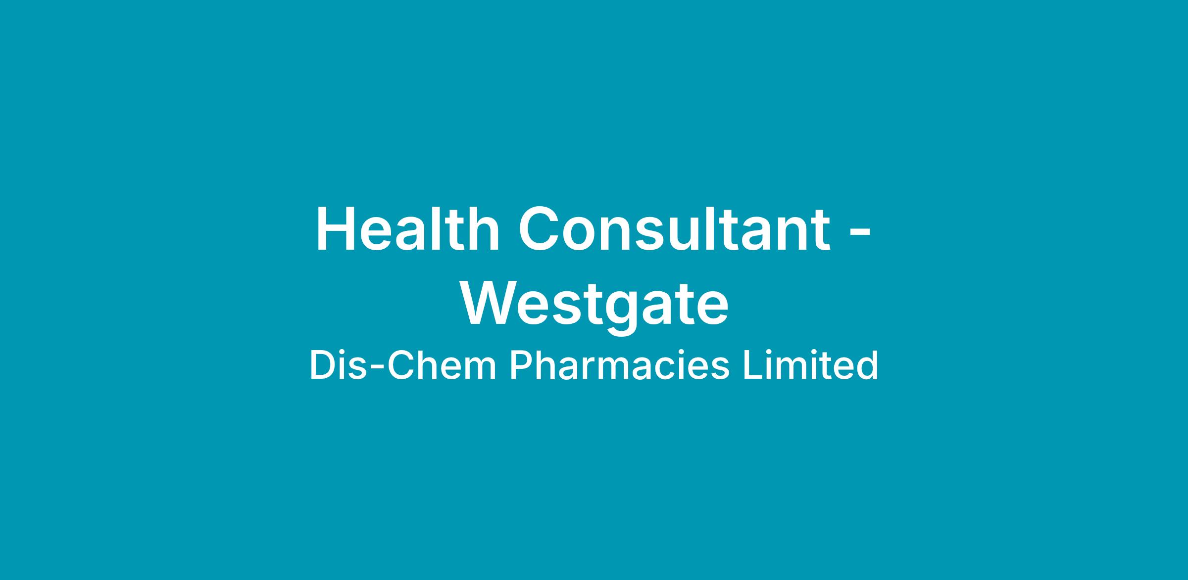 Dis-Chem Pharmacies' requires the services of a reputable Health Consultant specialising in Vitamins and Supplements for their store in Wetsgate.