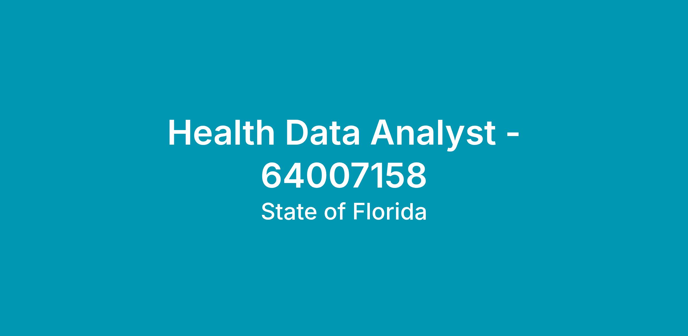 Working Title: HEALTH DATA ANALYST - 64007158