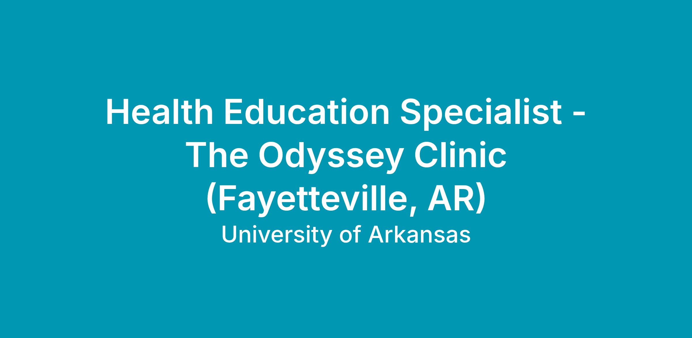 The Behavioral Health Service Line (BHSL) Northwest Arkansas Odyssey Clinic is currently seeking a highly motivated and skilled Health Education Specialist to join our First Episode Psychosis Program Team. This position will be responsible for providing comprehensive support services associated with the NAVIGATE program’s Supportive Employment and Education Specialist (SEE) and other case management services to our clients who are experiencing a first episode of psychosis. As a Health Education Specialist/Care Coordinator, you will play a crucial role in assisting our clients in achieving their vocational and educational goals through the NAVIGATE program's Supportive Employment and Education Specialist (SEE) and other case management services.