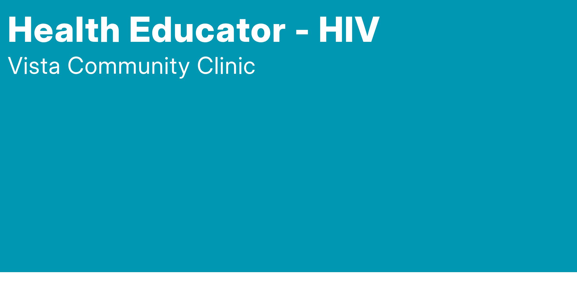 Vista Community Clinic is a private, non-profit, multi-specialty outpatient clinic providing care in a comprehensive, high quality setting. Located in San Diego, Orange and Riverside counties, we work to advance community health and hope by providing access to premier health services. We are looking for dedicated, motivated, enthusiastic team players who want to make a difference in the community. Our competitive compensation and benefits program includes health, dental, vision, company-paid life, flexible spending accounts and a 403(B) plan, for eligible employees. VCC is an equal opportunity employer.
