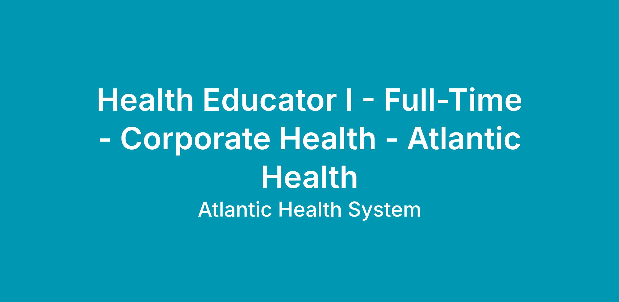 DescriptionThis position will work within parameters set by the National Commission for Health Education Credentialing, Inc. and/or other specified governing body, to perform all roles and responsibilities. The Health Educator will work under the general direction of the Atlantic Corporate Health (ACH) manager, management team, and Medical Director. This health professional is responsible for the development, implementation, and administration of comprehensive health and wellness initiatives designed to engage client-company employees or target audience.