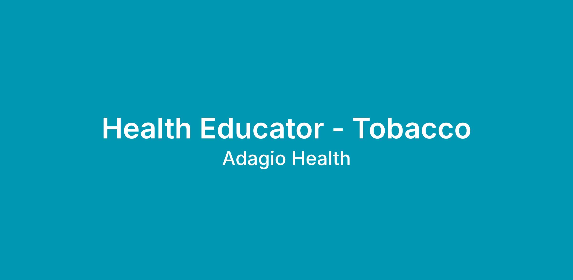 Adagio Health Inc is looking to hire a full-time Health Educator - Tobacco for Allegheny County, Pennsylvania, with headquarters at the Pittsburgh, PA central office. This role is a flexible, hybrid position.