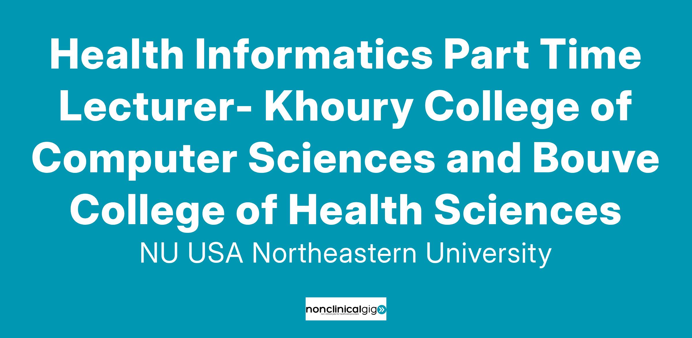 The Khoury College of Computer Sciences invites applications for the position of Part-time teaching faculty. This is a joint position in the Khoury College of Computer Sciences and the Bouve College of Health Sciences.