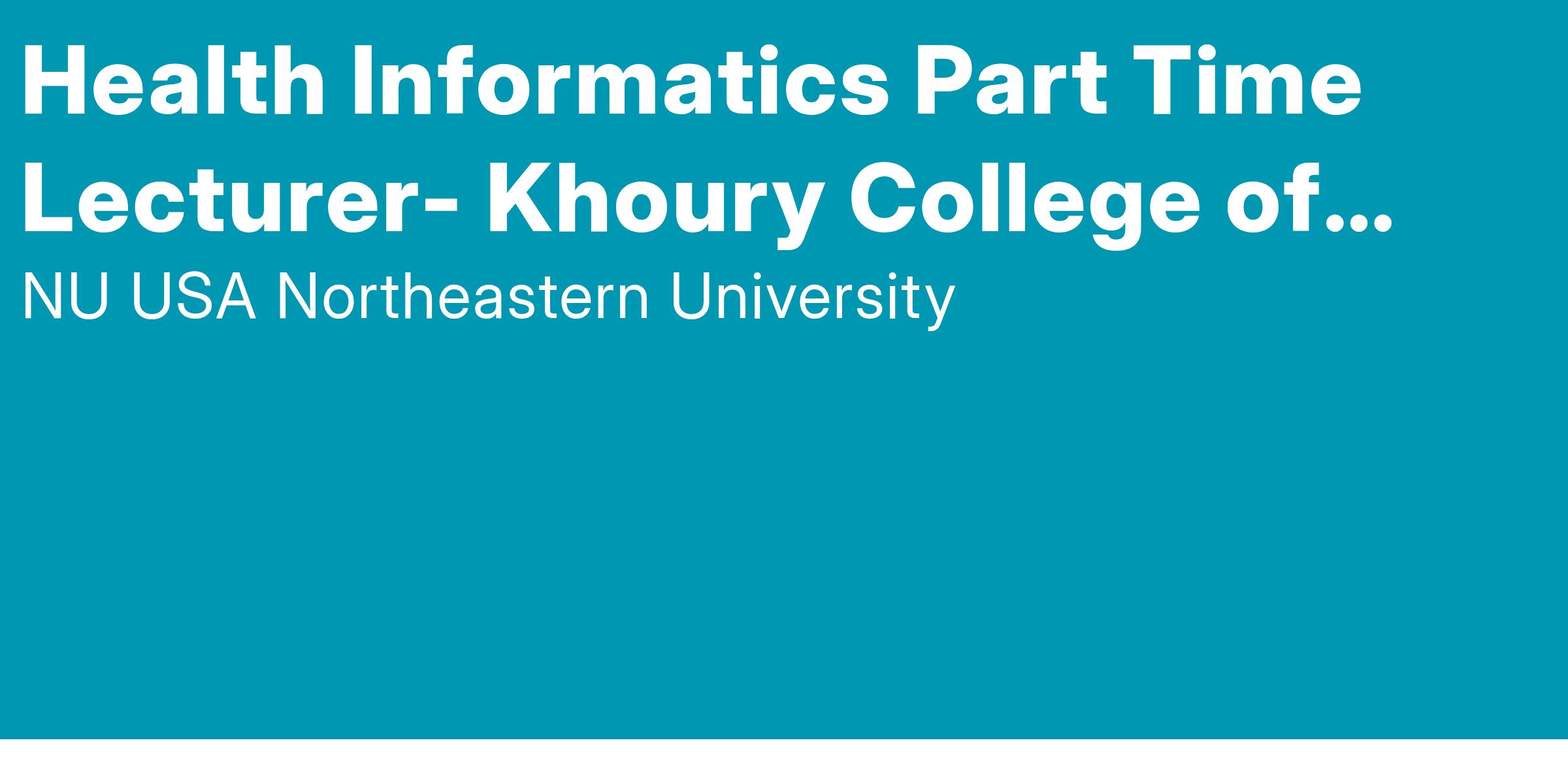 Teach and develop on-line or on-campus courses in the Health Informatics graduate program. This is a joint position in the Khoury College of Computer Sciences and the Bouve College of Health Sciences.