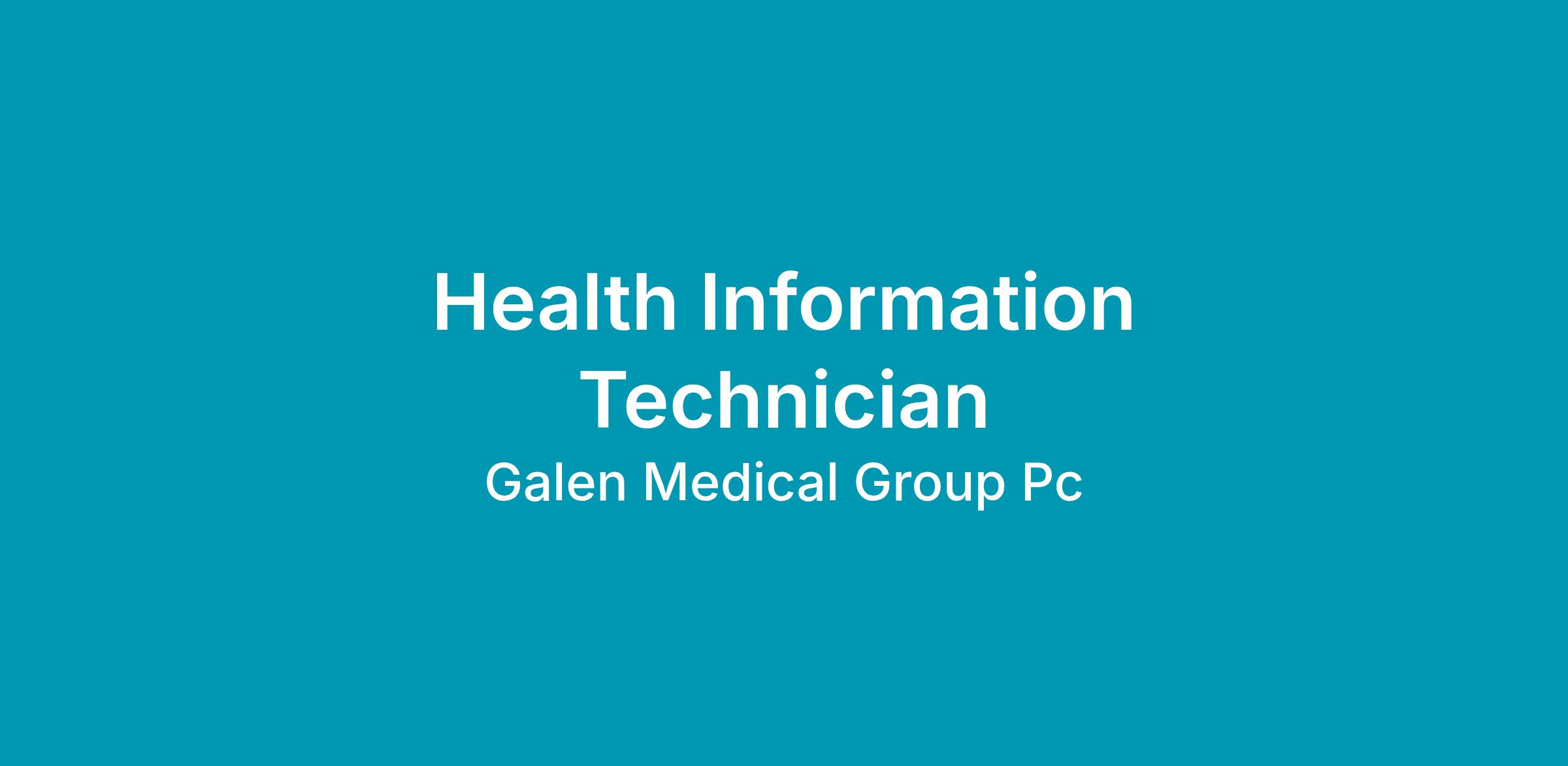 Summary/Objective: The Health Information Technician is responsible for aiding the HIT Department with programming, maintenance and functional/technical support of the Provider Portal, Patient Portal, Practice Management System, and Electronic Medical Record System utilized by Galen. Support functions include but are not limited to normal maintenance of business, interfaces, upgrades, testing, maintenance of systems, access control, and assisting patients using the patient portal. Although you may specialize in one system as tech, you will work to learn the other system.