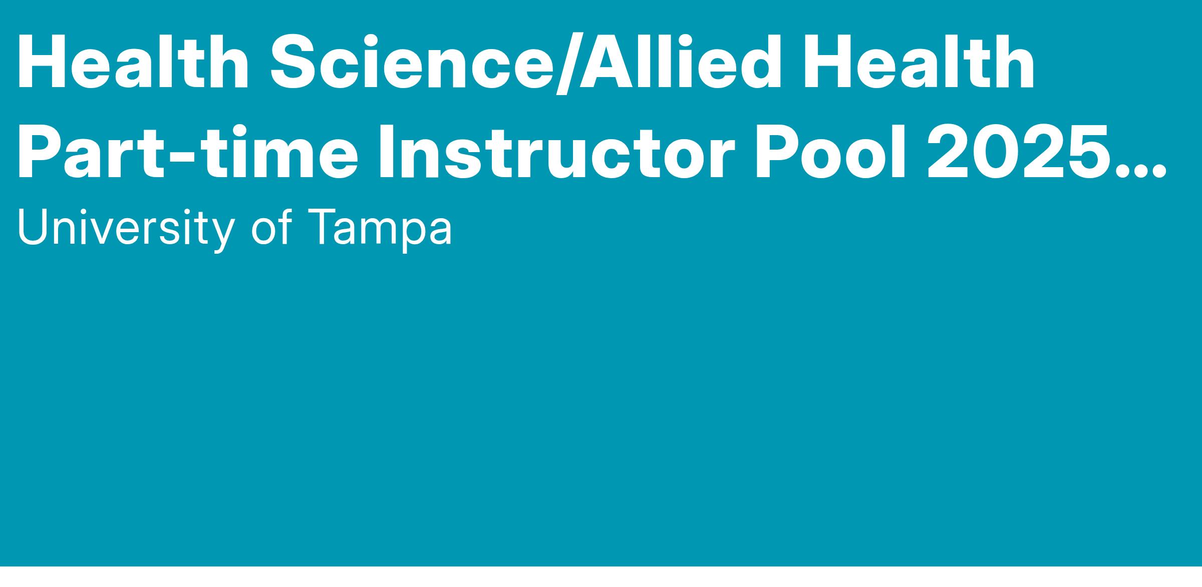 The Department of Health Sciences and Human Performance in the College of Natural and Health Sciences at The University of Tampa invites applications for part-time instructors in health sciences, personal health, nutrition or allied health.