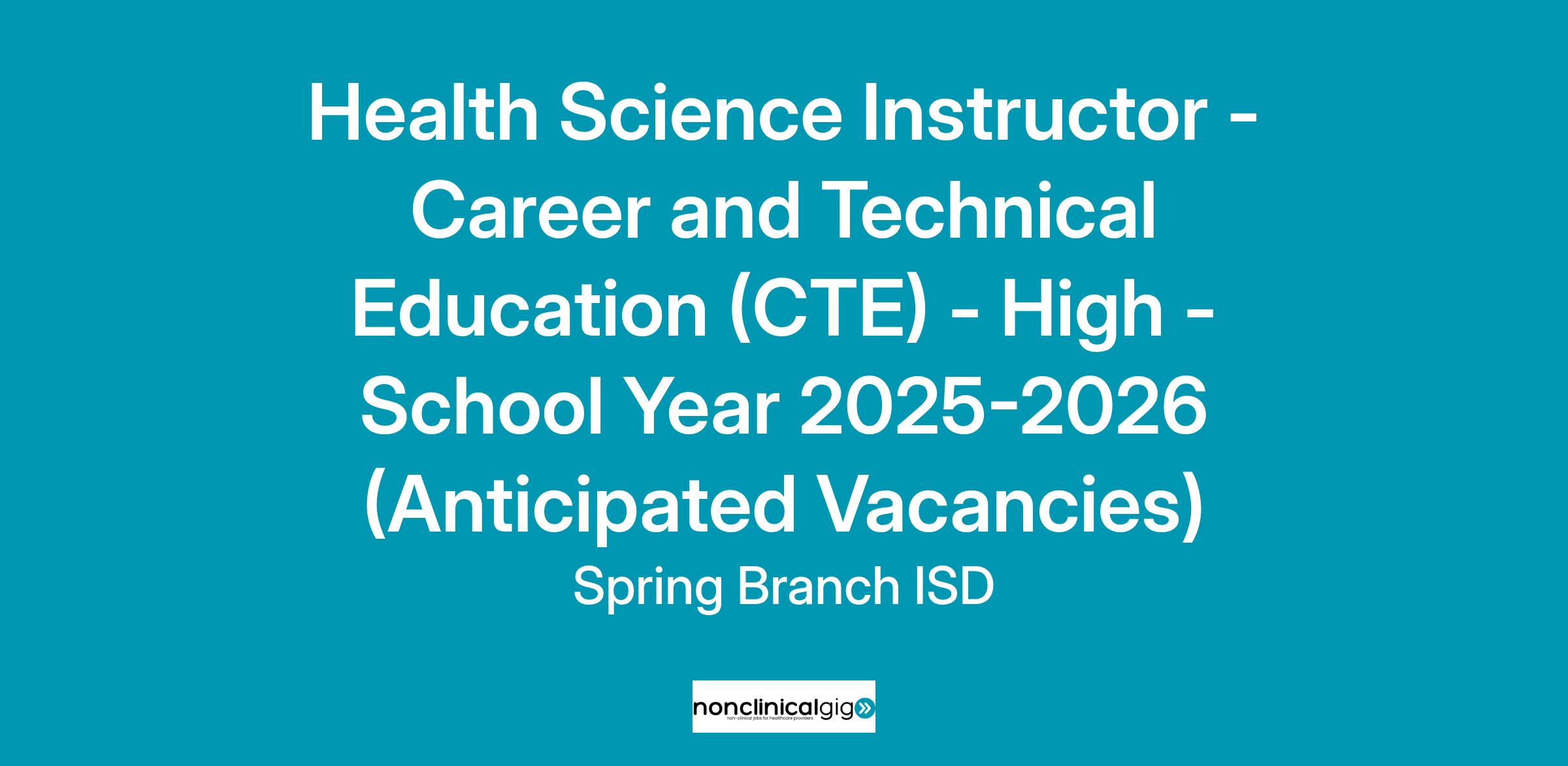Job Title: | Health Science Instructor - Career and Technical Education (CTE) |