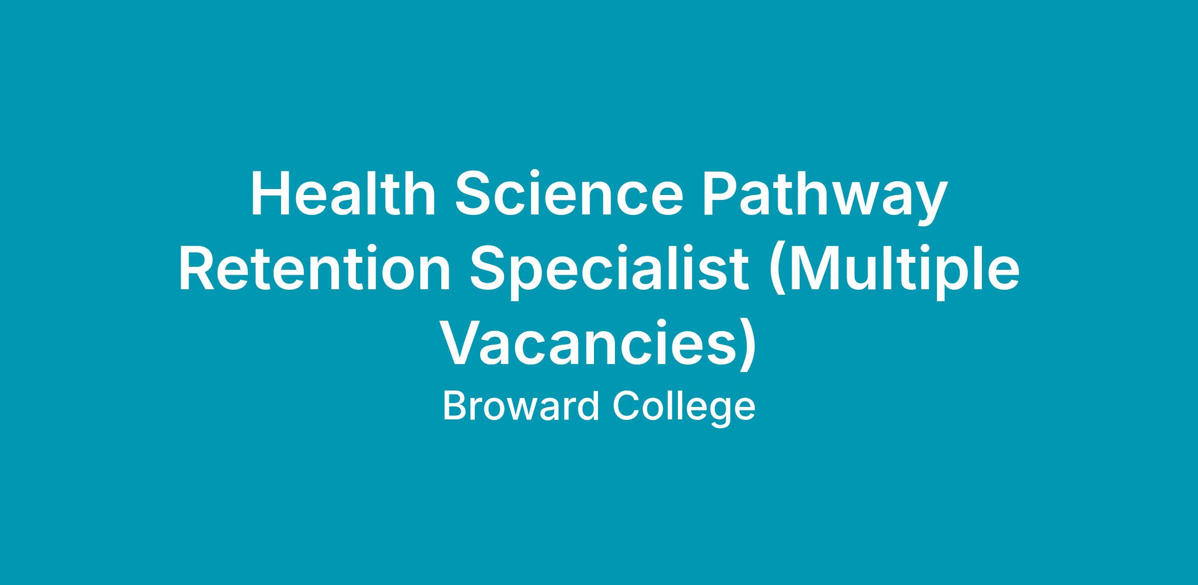 Health Science Pathway Retention Specialist (Multiple Vacancies)