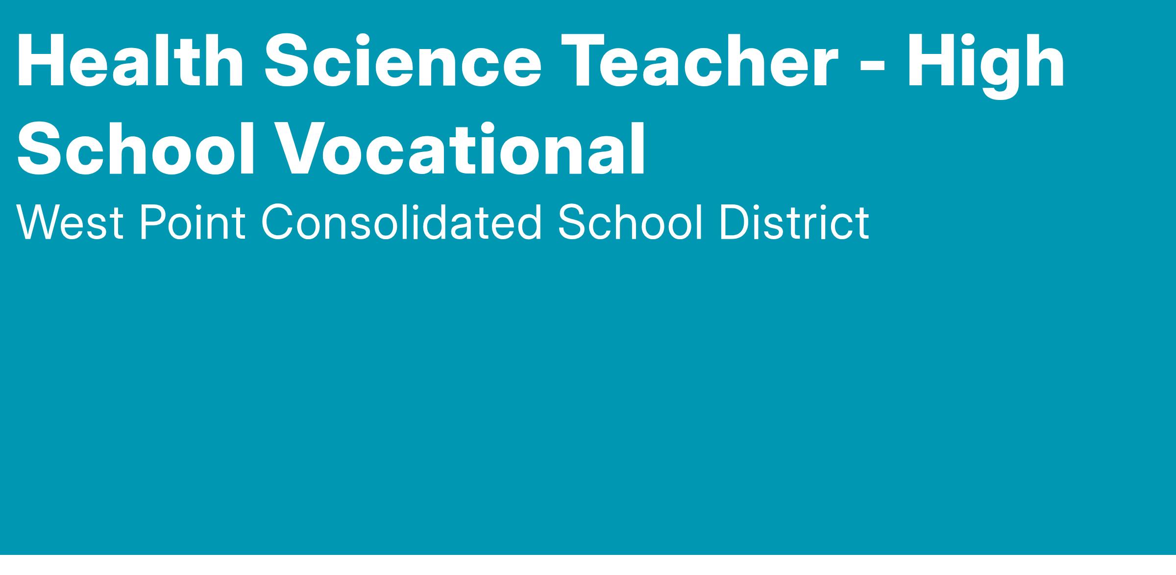 High School Health Science teaching position - Must be an LPN or higher and have at least 2 years of verifiable occupational experience in the past 10 years