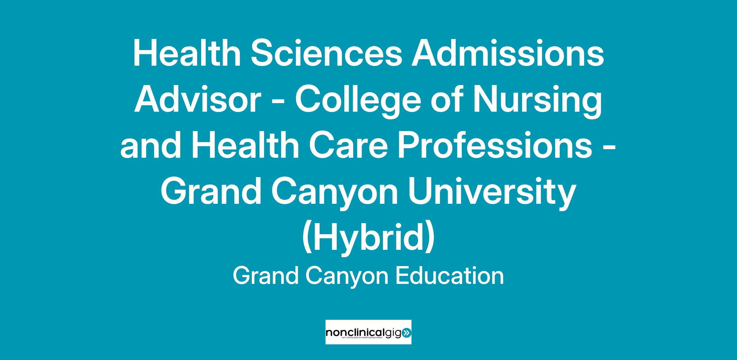 Join us at Grand Canyon Education - College of Nursing and Health Care Professions and begin a career in helping Health Sciences students succeed! We are looking for a motivated Admissions Advisor to oversee the student admission process.