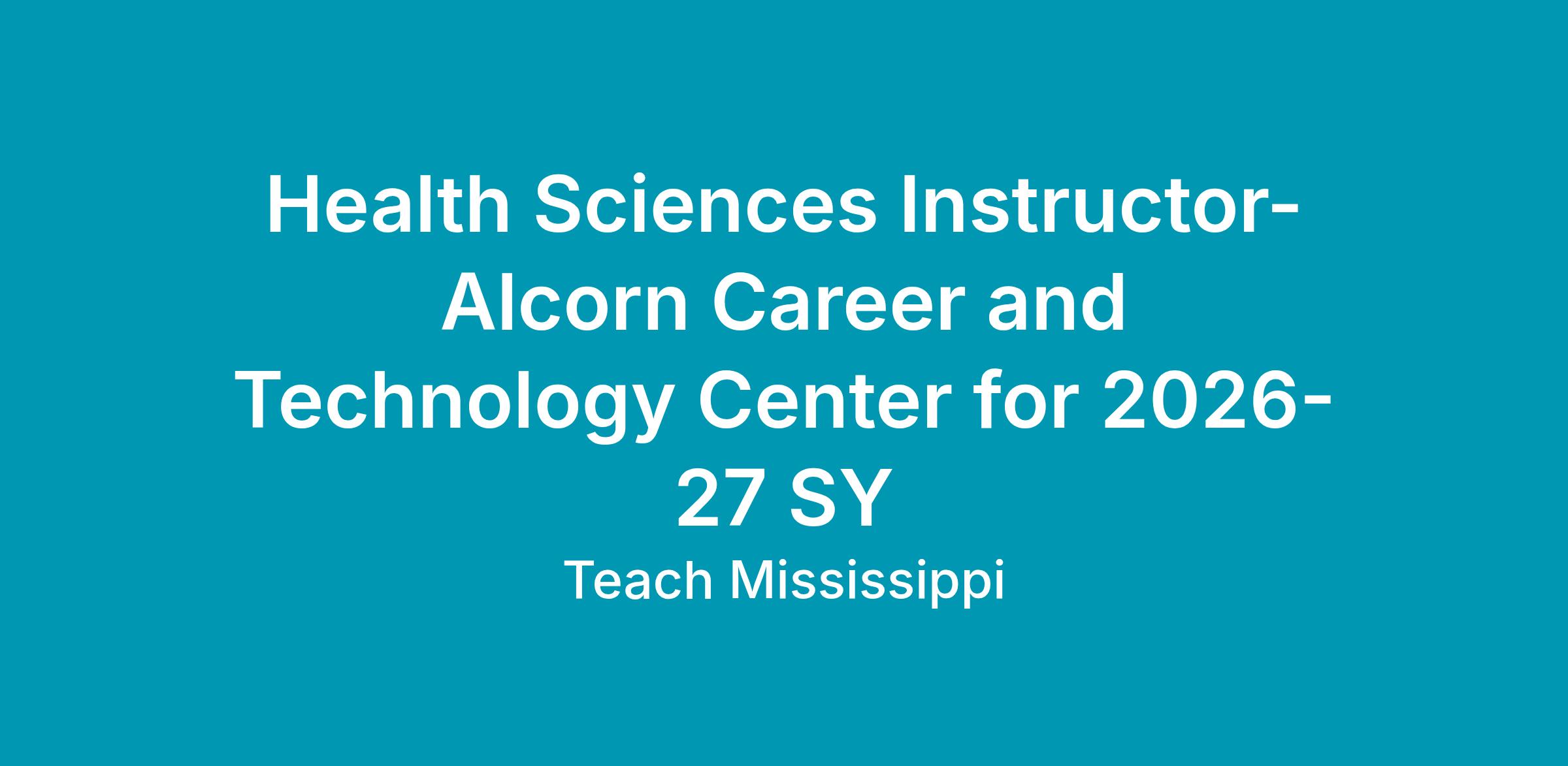 Health Sciences Instructor- Alcorn Career and Technology Center for 2026-27 SY