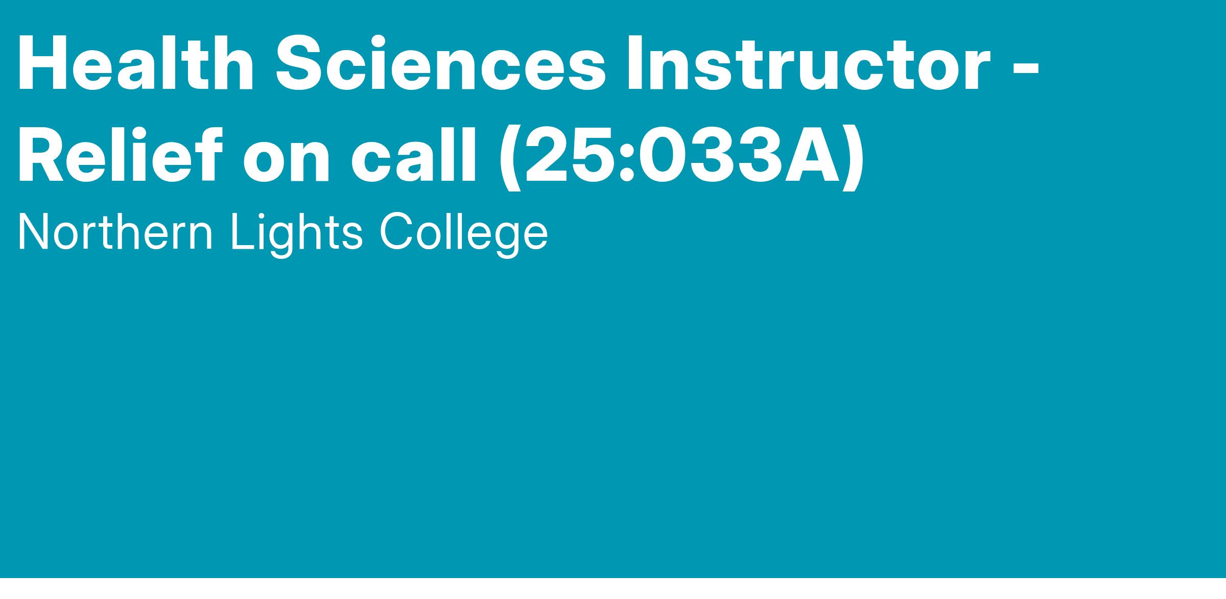 NLC's Health Sciences programs requires a temporary, relief instructor to teach courses across the health programs, which may include communications, professional practice, health promotions, variations, pharmacology, integrated nursing practice, or consolidated practice.