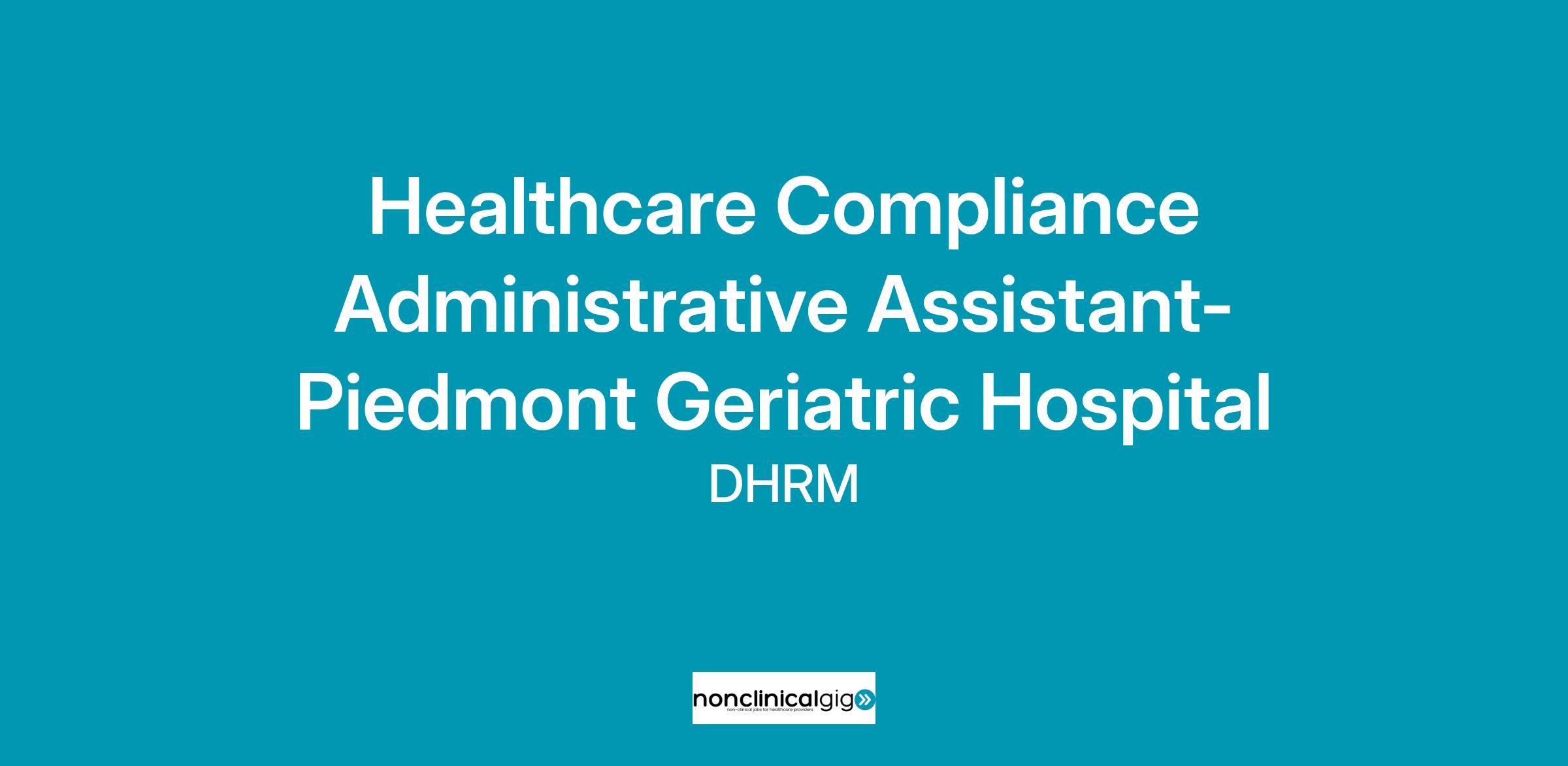 Title: Healthcare Compliance Administrative Assistant- Piedmont Geriatric Hospital