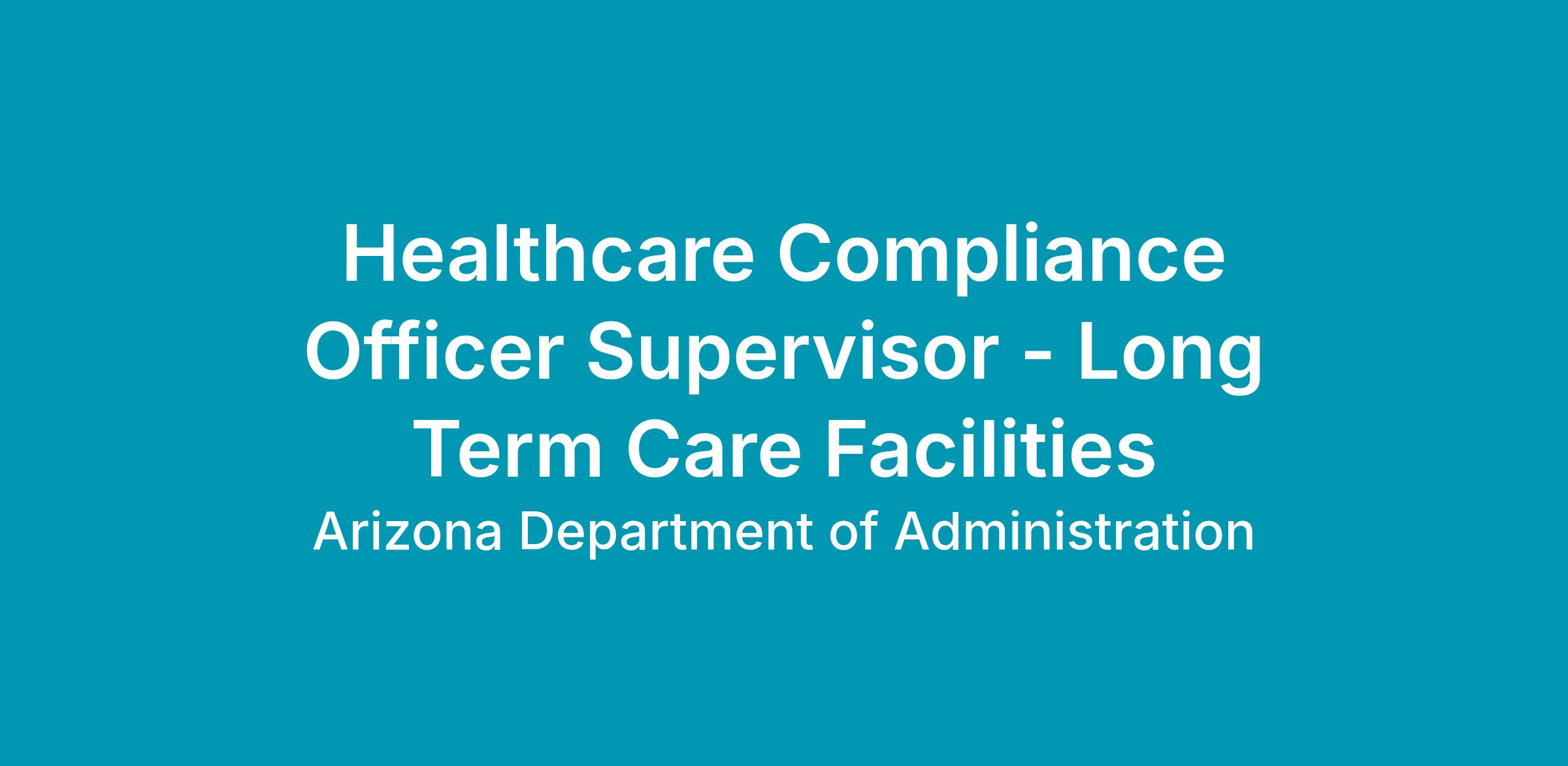 Healthcare Compliance Officer Supervisor Long Term Care Facilities