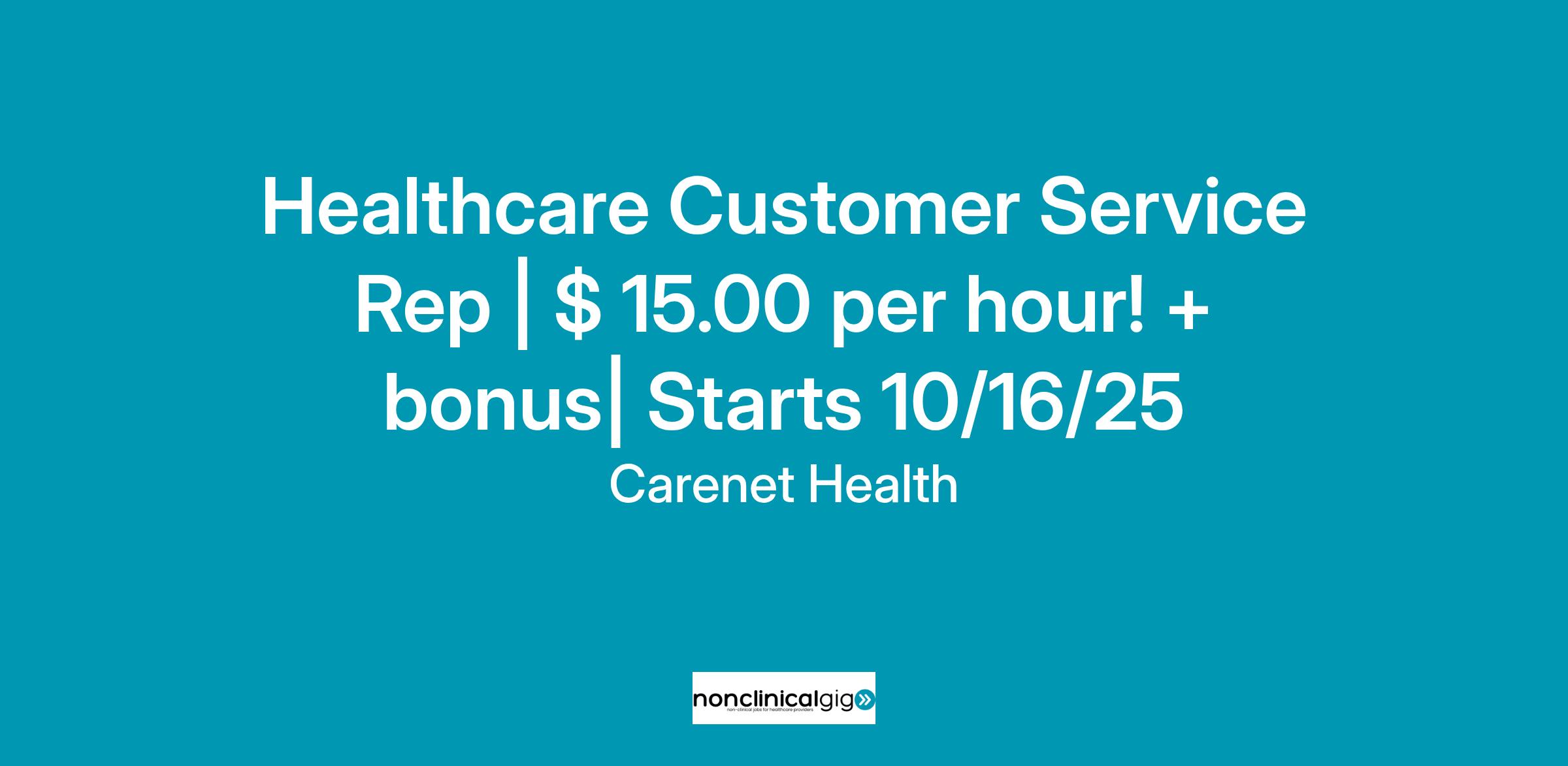 At Carenet Health, we value the expertise and dedication of our team members, and we are committed to offering an appealing compensation package. The wage for the Healthcare Customer Service Rep is $15.00 per hour.