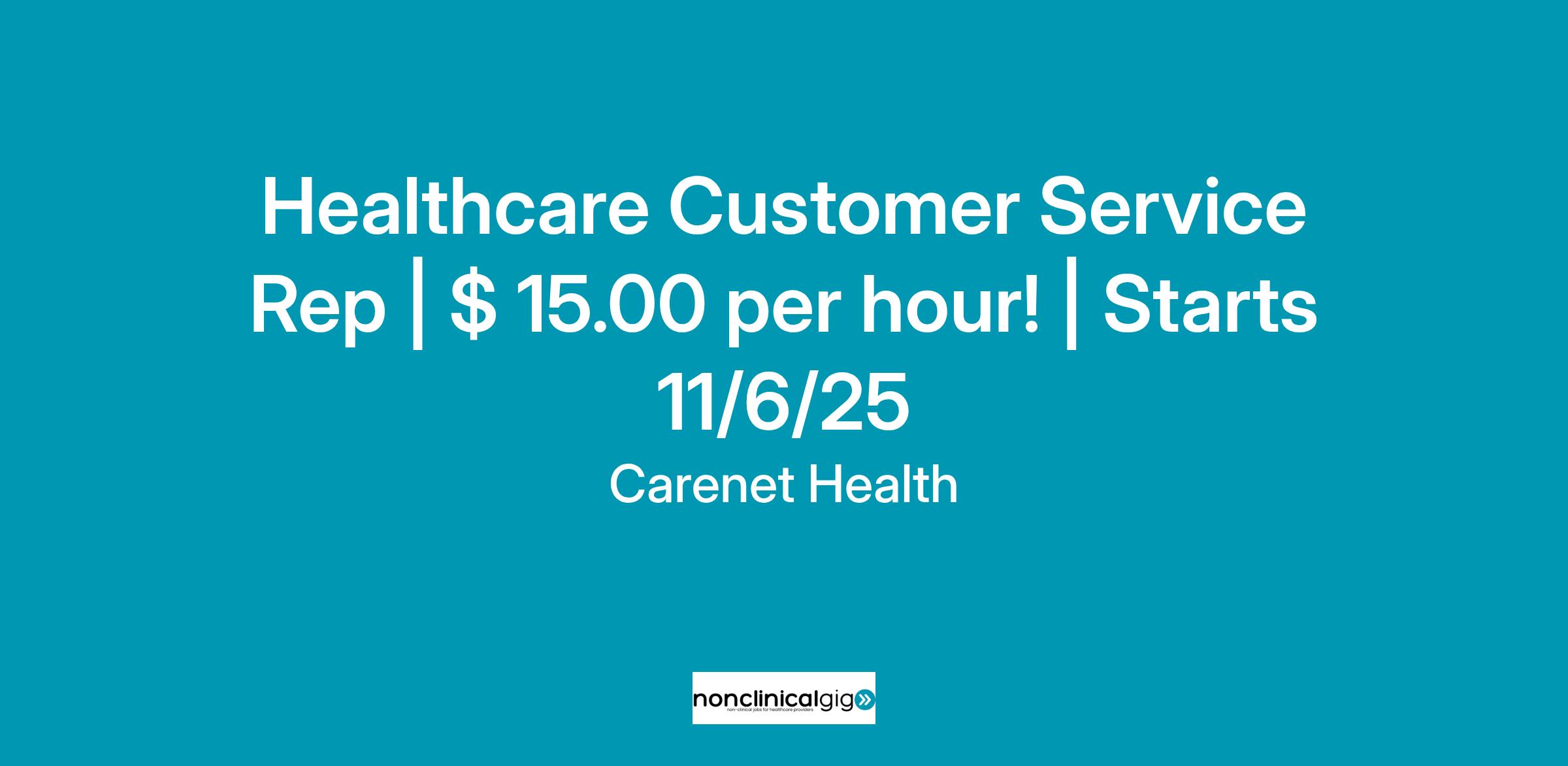 At Carenet Health, we value the expertise and dedication of our team members, and we are committed to offering an appealing compensation package. The wage for the Healthcare Customer Service Rep is $15.00 per hour.