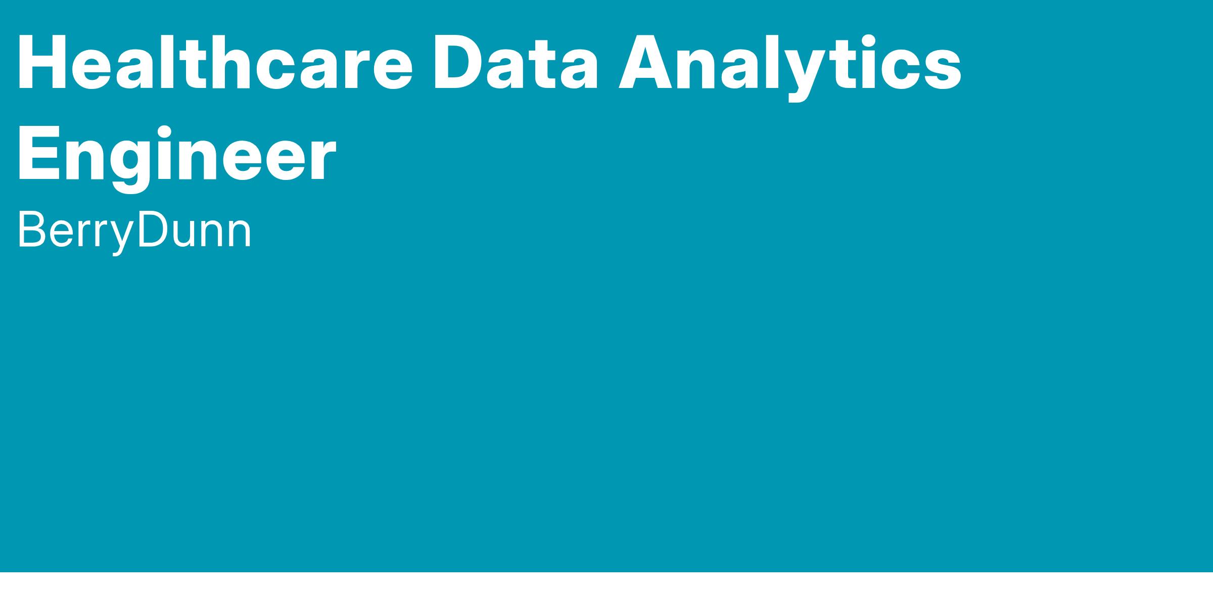 BerryDunn’s Healthcare Analytics Practice Group (HAPG) is looking for a Healthcare Data Analytics Engineer to join and grow with our practice. Our Data Management and Strategy Practice provides end-to-end data management and analytics services to clients across public and private sectors. You can expect a range of projects including, but not limited to: