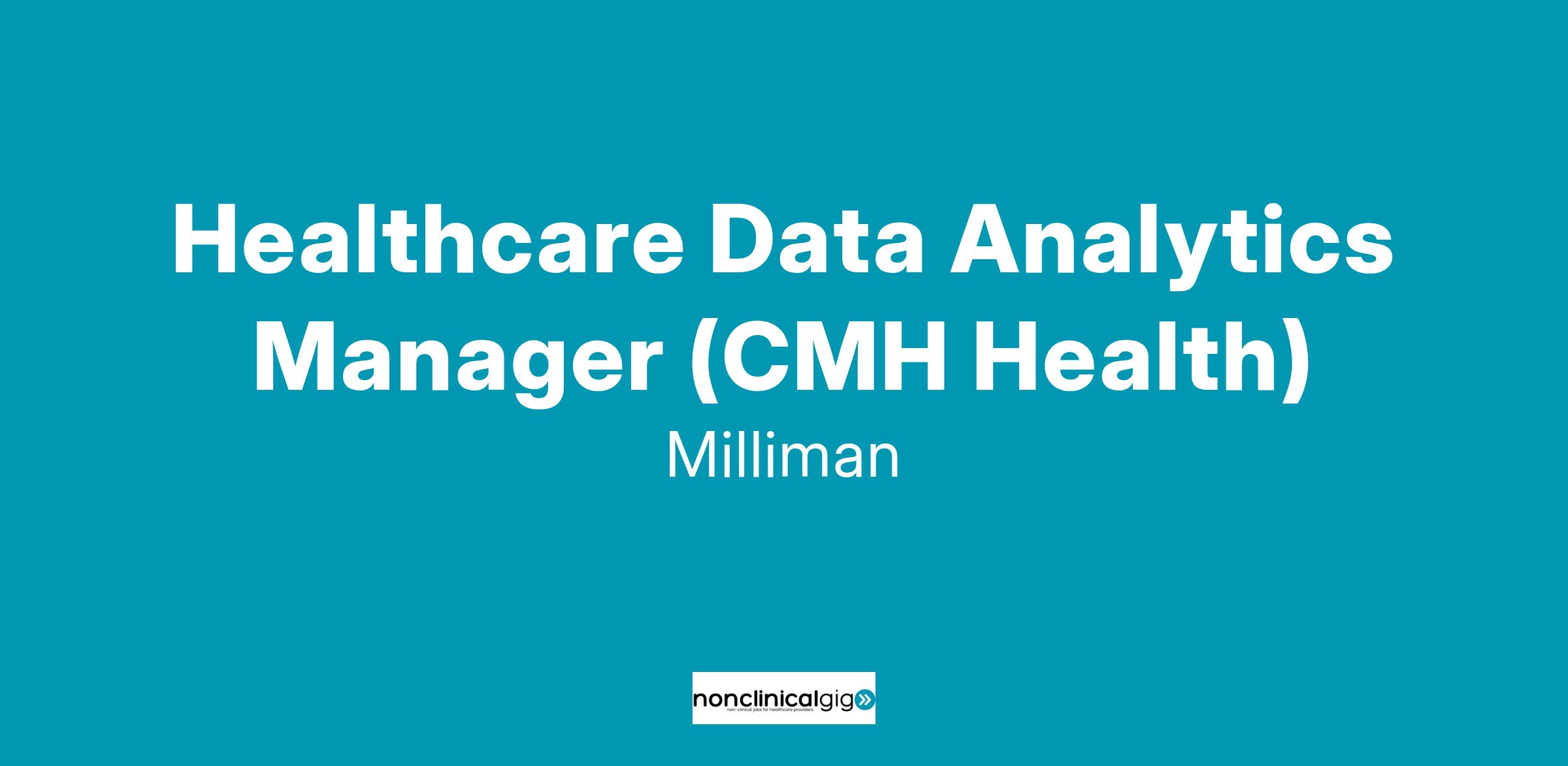 CMH Health is looking for a driven, entrepreneurial, and self-learning healthcare data analytics manager to join their team. The ideal candidate will be passionate about providing the best healthcare consulting services to our clients while making meaningful contributions to projects and the firm. Our managers are independent problem solvers who care about the quality of the work that is delivered to clients and to each other.