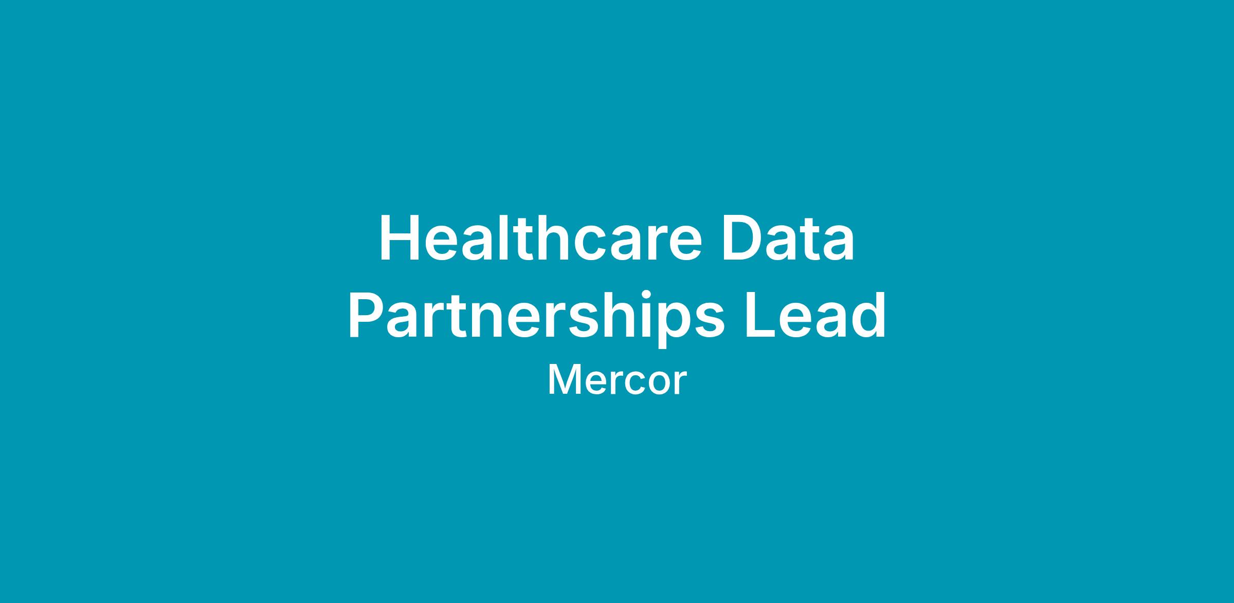 As Healthcare Data Partnerships Lead, you'll build and own Mercor's data partnerships engine in healthcare from the ground up. An integral part of our strategy is partnering with health systems, payers, EHR vendors, and other organizations that hold large, high-quality healthcare datasets to access new kinds of data at scale.