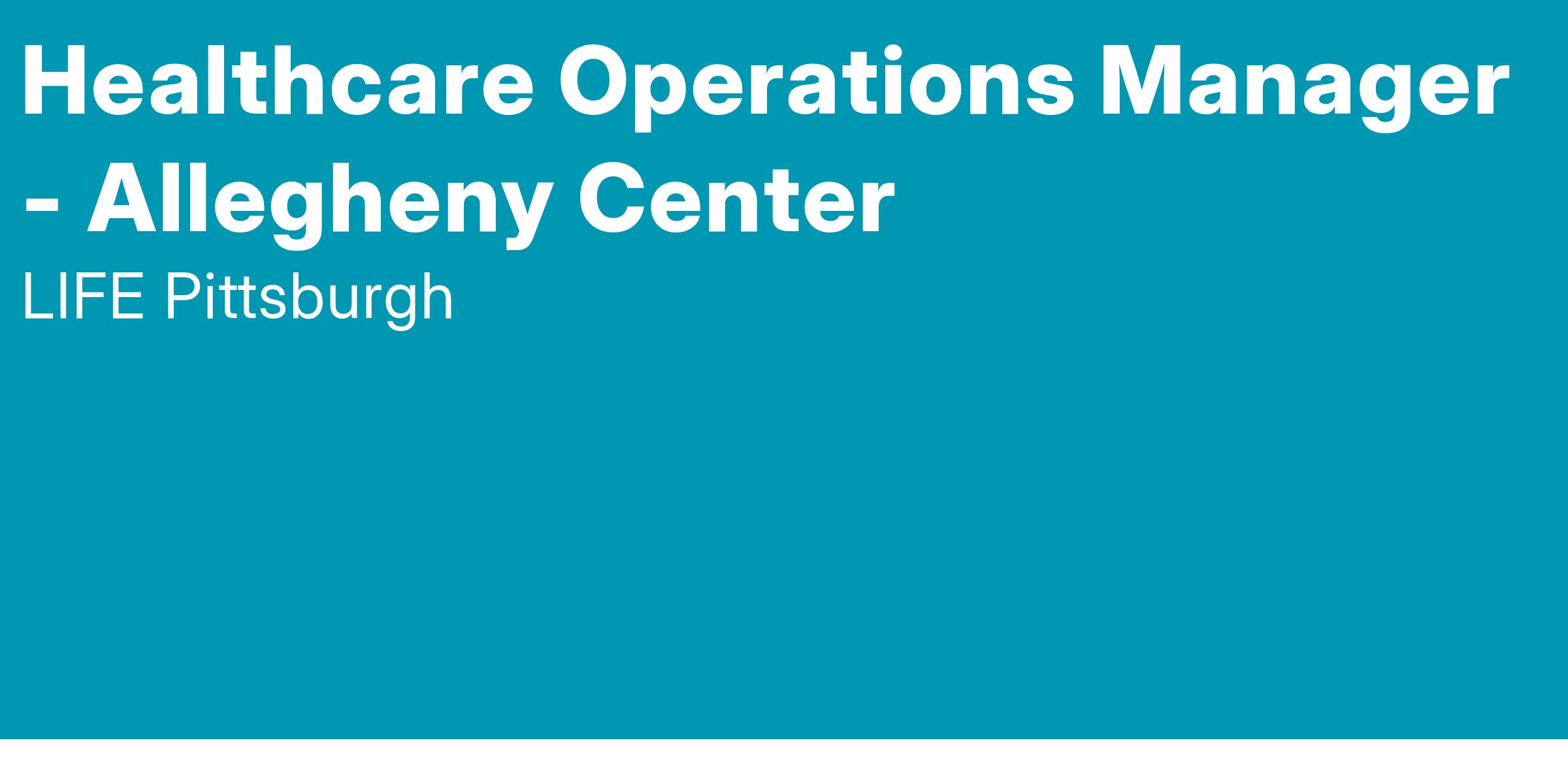 The Operations Manager, in collaboration with and under the direction of the Center Administrator, is responsible for aspects of the day-to-day operations, administration, coordination of all care delivered to LIFE Pittsburgh Participants.