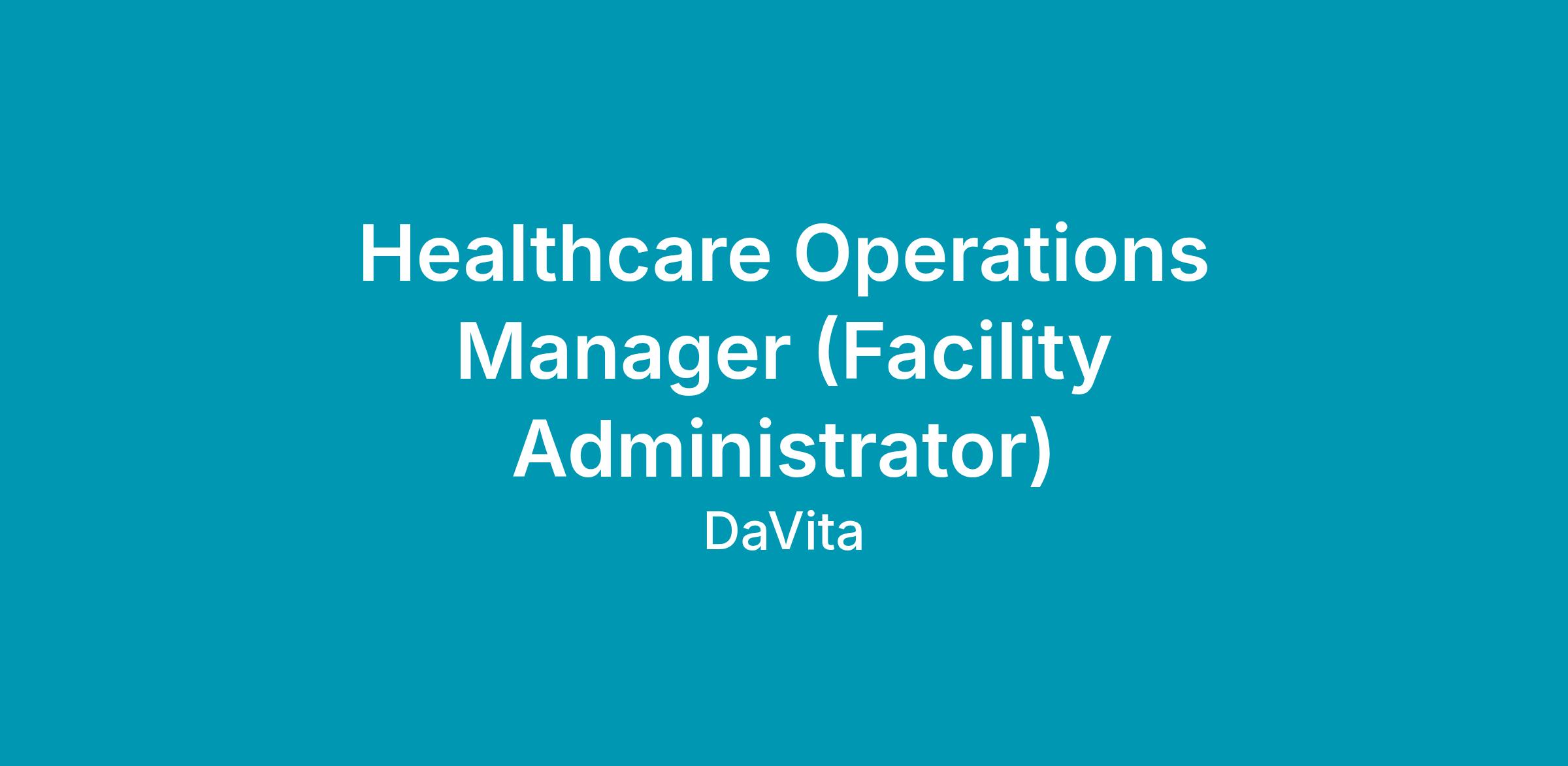DaVita has an open position for a Healthcare Operations Manager (Facility Administrator) who must be an ambitious, operationally-focused and results-driven leader. You will directly impact patient care as the trusted front-line leader in an outpatient clinic setting. Health care experience is not required!