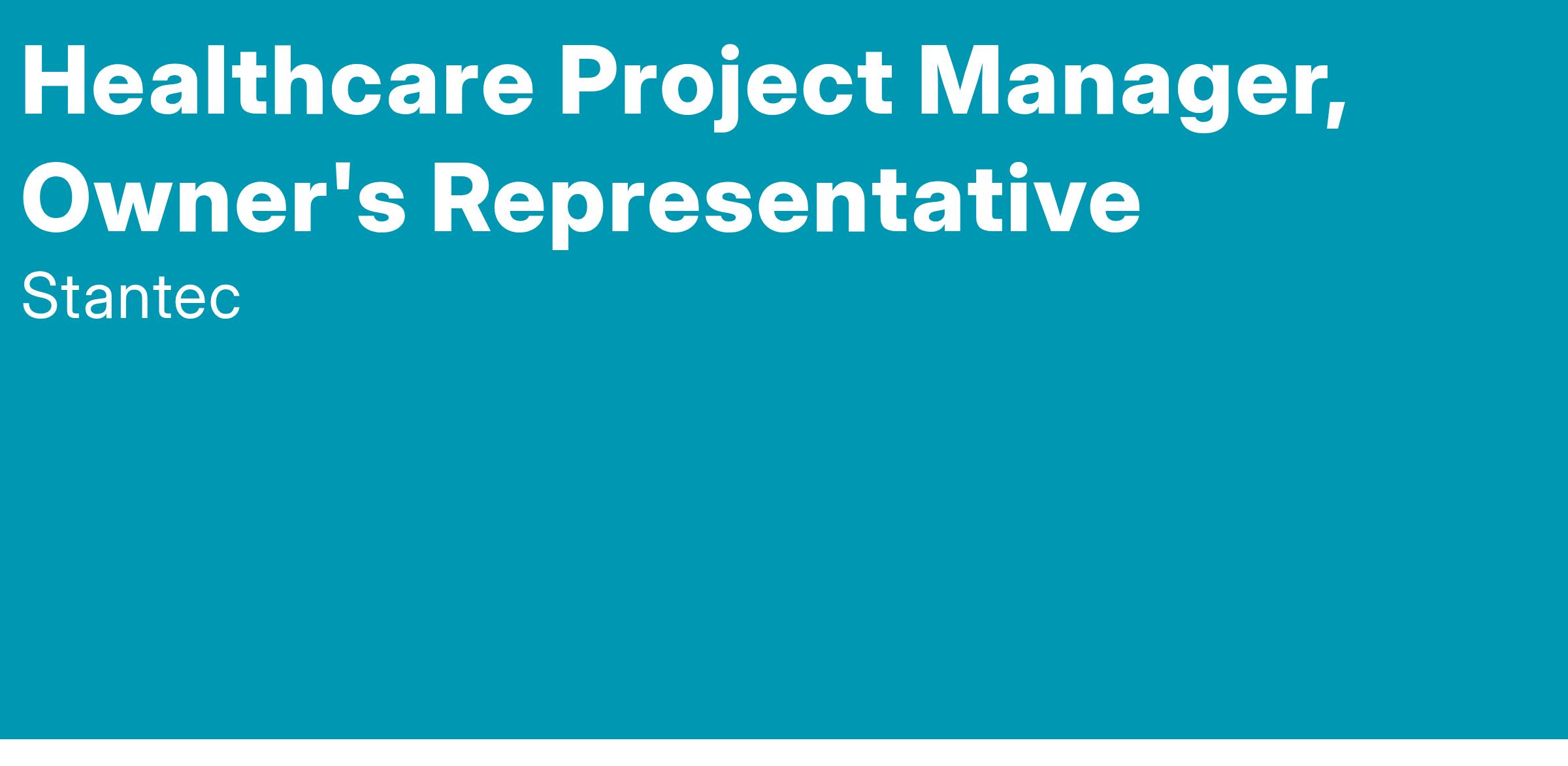 Stantec seeks an Owner’s Representative, at the Project Manager level, to manage projects on behalf of owners in the healthcare sector. In this role, you will be working on projects in various stages of development and complexity from conceptual planning through design, and construction. Regular travel is required to client sites to work with the project teams and provide onsite supervision.