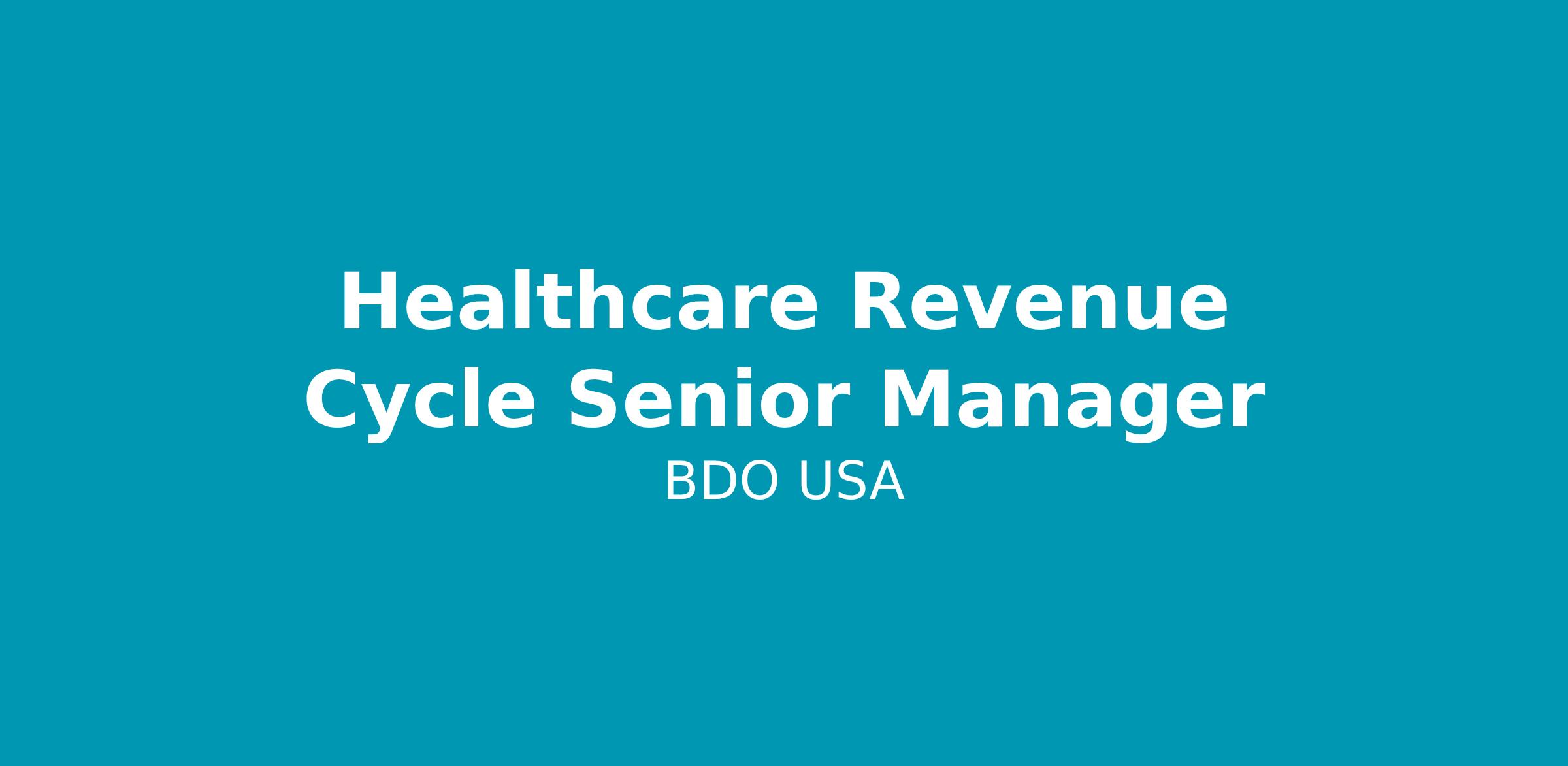The Healthcare Revenue Cycle Senior Manager provides clients with senior-level healthcare consulting services by assessing the client’s business needs, recommending and implementing solutions, and managing BDO and client staff in this process. Position reflects significant industry experience in a hospital or practice setting commensurate with a senior leadership role.