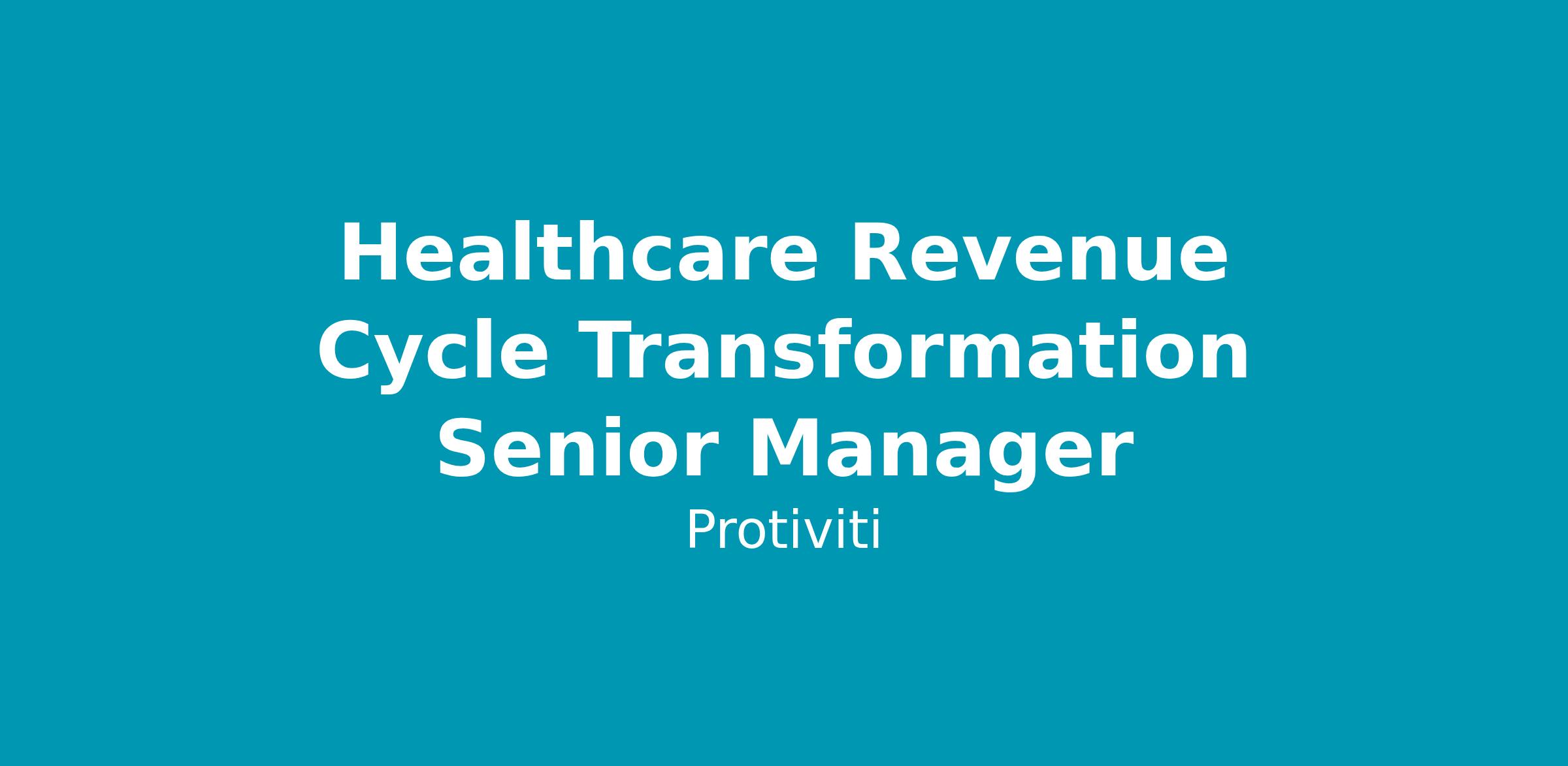 Protiviti is seeking a Revenue Cycle Transformation Senior Manager to join our growing Healthcare practice.