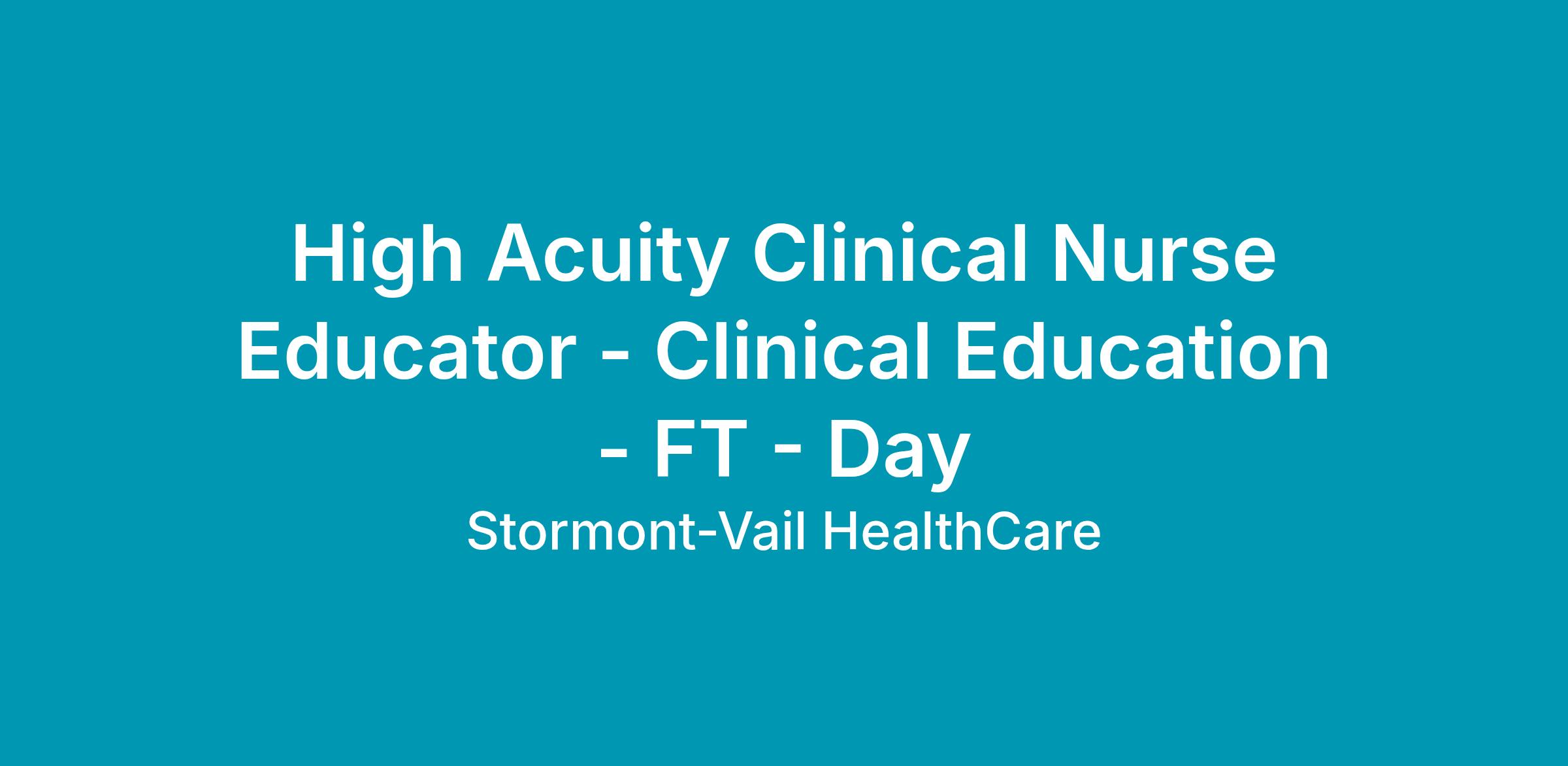 The High Acuity Clinical Nurse Educator is a professional Registered Nurse with in-depth scientific knowledge, technical expertise, skill and competency that serves as a business partner and resource in the patient care setting and supports nurse and clinical development and ongoing training initiatives. This position participates in the development of clinical education and programs that facilitate forward movement in high acuity health care. Acts as a change agent by suggesting new or innovative approaches based on evidence-based clinical practices that result in improvements in quality outcomes. This role actively collaborates in the entire orientation/onboarding process. This position focuses on High Acuity Services and liaises with the High Acuity Departments (ED, Critical Care, and PACU).